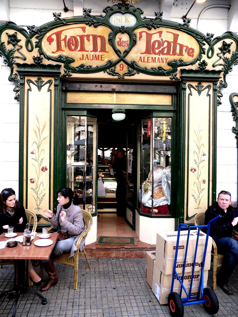 Auch dieses Mal begannen wir unseren 5 stündigen Rundgang beim Museum „Es Baluard“ und genossen von den Mauern des früheren Forts aus den immer wieder faszinierenden Rundblick über die Altstadt, den Hafen und die bergige Umgebung. Danach bummelten wir durch die geschäftige Jaume III an den großen Kaufhäusern und Luxusgeschäften vorbei und begannen vom Theater aus den Aufstieg zum Placa Mayor mit seinen witzigen Gauklern. Der Weg führte weiter zur Straße Saint Miquel, mit dem Besuch der gleichnamigen Kirche und des sehenswerten Museums Juan March, in dem ausschließlich moderne spanische Künstler ausgestellt werden. Ein kultiger Cappucino im historischen Ambiente des Cafe Cappucino gehört ebenso zum Ritual eines jeden Palmabesuchs, wie der anschließende Spaziergang hinab zur wundervollen Kathedrale. Es fiel mir auf, dass die schmale Fußgängerzone, deren Beginn von prachtvollen Jugendstilgebäuden beherrscht wird, ein deutliches Trading Up der Geschäfte und Sortimente hinter sich hat. Die früheren touristischen Billigläden wurden ersetzt durch lustvolle Feinkost- und Delikatessengeschäfte, Weinläden, Bäckereien, Tapasbars etc. Selbst die unvermeidlichen Schuh- und Textilgeschäfte, Schmuck- und Andenkenläden haben in puncto fantasievoller Warendarbietung und Einrichtung deutlich aufgerüstet.