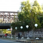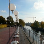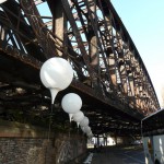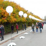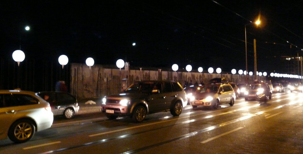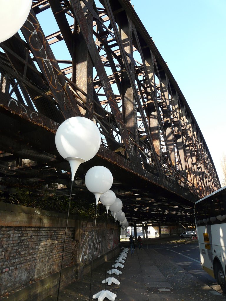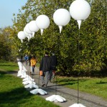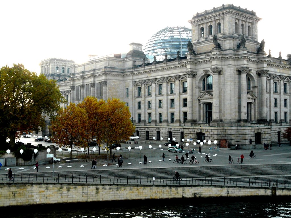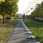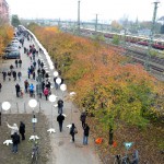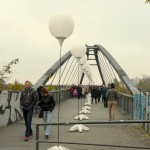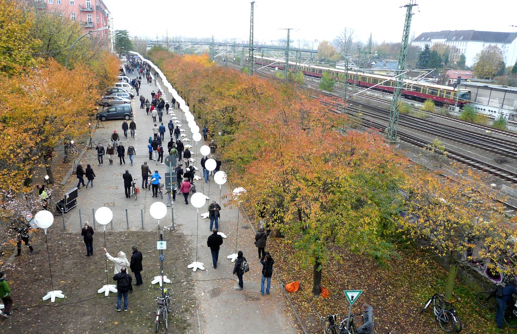 8000 weiße Ballons stellten als „Lichtgrenze“ den ehemaligen Verlauf der Berliner Mauer nach – auf 15 Kilometer, von der Bornholmerstr. im Norden über die Bernauerstr., vorbei am Reichstag, dem Brandenburger Tor, dem Potsdamer Platz und Checkpoint Charlie bis zur East Side Gallery und der Oberbaumbrücke im Süden.