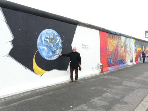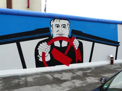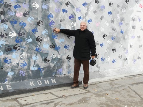 Soviel zu den nackten Daten – wir hatten das Glück genau am 6.11.09, dem Tag der offiziellen Übergabe der sanierten Mauer, vor Ort zu sein und die Eröffnung mitzufeiern. Wir liefen die ganzen 1000 Meter Mauer ab, sprachen mit den anwesenden Künstlern und vielen Besuchern aus aller Welt, die sich mit uns an den phantasievollen Motiven erfreuten.