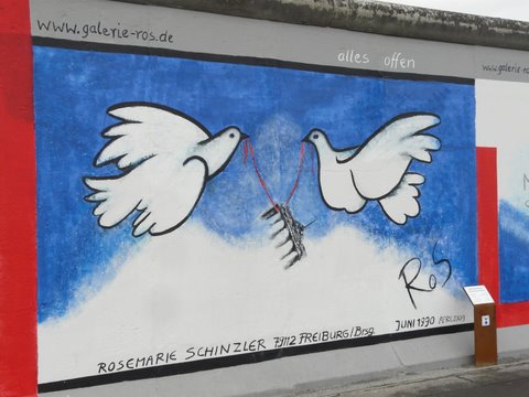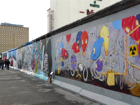 Mauer (999 Meter). Zwischen Januar und September 1990 wurde diese Originalmauer in einer spontanen Kunstaktion von 118 Künstlern aus 21 Ländern mit großformatigen Wandbildern bemalt und unter Eastside Gallery überregional bekannt. Diese größte Open Air Gallery der Welt dokumentierte die Freude und Euphorie der Künstler, dass die Mauer als Symbol der Unfreiheit überwunden werden konnte.