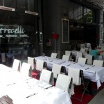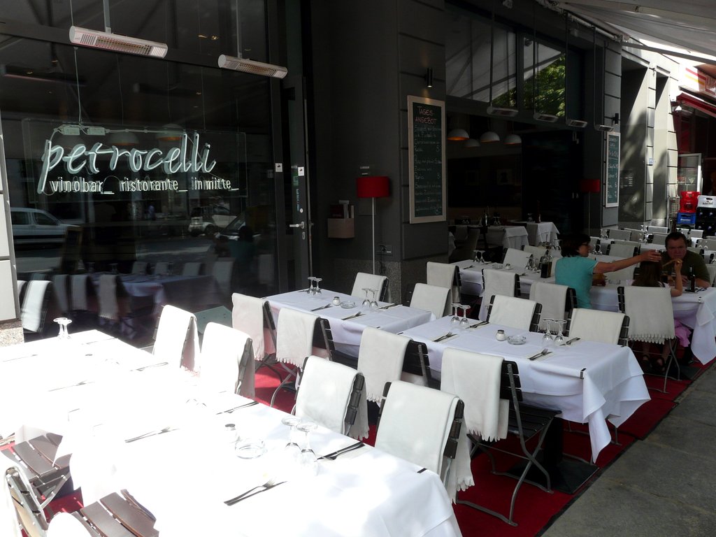 Wir wechseln wieder die Straßenseite und stehen in der Torstr.171 vor dem nächsten Italiener – Petrocelli hat hier kürzlich sein 5. Restaurant in Berlin und das erste in Mitte eröffnet. Sehr empfehlenswert ist das preiswerte Mittagsmenü, das sich der Gast aus den Vorspeisen und Hauptgängen der normalen Speisekarte für 12.-€ selbst zusammenstellen kann.