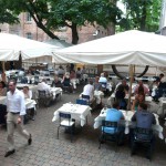 Da ich in der Nähe der S-Bahnhaltestelle Nordbahnhof wohne, habe ich nur Lokale ausgesucht, die nicht weiter als 15 Gehminuten von meiner Wohnung entfernt sind, d.h. in dem Bereich der Invaliden-, Garten-, Tor-, Linien- und Augustrasse liegen – einige Ausnahmen bestätigen allerdings die Regel. Grundsätzlich stößt der Gast in diesem Geviert auf eine bunte und breite, vor allem aber internationale Mischung an Lokalen – vom Sternerestaurant bis zum Schnellimbiss. Man isst hier in der Regel gut und preiswert und hat sich auf eine jüngere und internationale Klientel eingestellt – eine bunte Mischung aus gebildeter Mittelschicht, Studenten, Touristen, Mitarbeitern der Ministerien, Parteien und vielfältigen politischen und wirtschaftlichen Interessengruppen, Selbständigen aus kreativen Berufen, IT-Nerds, Künstlern, Wissenschaftlern aus aller Herren Länder. Angesagte Promi- und Sternelokale habe ich weitgehend gemieden – sie finden sich auch eher um den Gendarmenmarkt, wo die Preise folgerichtig inzwischen normales Großstadtniveau erreicht haben. In meiner Ecke ist die Welt preislich noch weitgehend in Ordnung, was auch dem Kinderreichtum der jungen Familien entgegenkommt. Ein weiteres Berliner Phänomen ist es, dass beim ersten warmen Sonnenstrahl sofort Tische und Stühle vor die Lokale gestellt werden – was Berlins Mitte sofort ein mediterranes Ambiente verleiht.