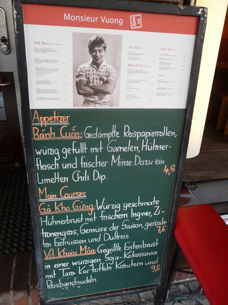 Zum Schluss erwähne ich den legendären Vietnamesen Mr.Vuong, in der Alten Schönhauserstrasse. Auch dort heißt es in den Hauptzeiten zusammenrücken – das Suppen- und Speisenangebot ist unglaublich schmackhaft und lecker, bei sehr angenehmen Preisen. Hier trifft sich nochmals die ganze Melange des bunten, internationalen Völkchens, das diesen Teil von Berlins Mitte bevölkert.