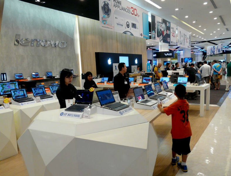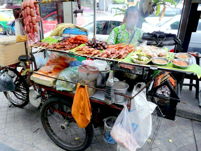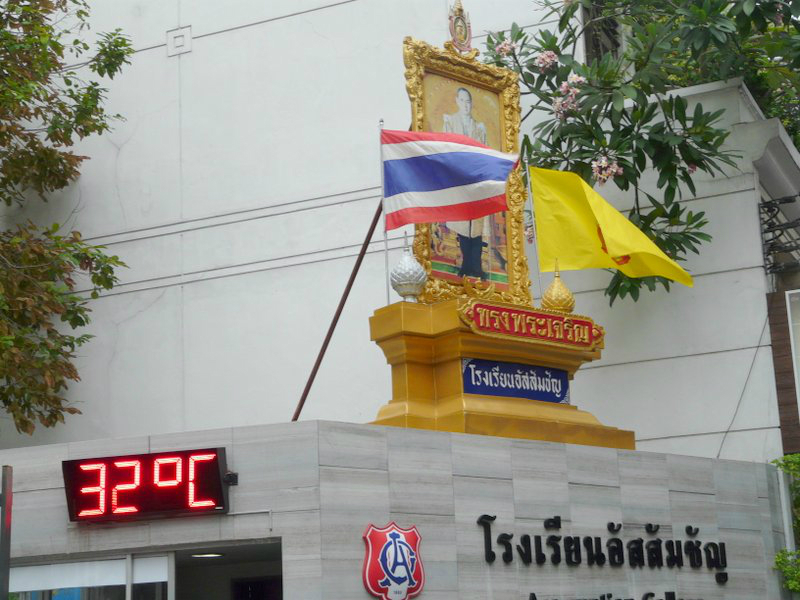 Wir unterbrachen unseren Rundgang durch das Paradies, um uns einen ersten Eindruck der Umgebung des Hotels zu verschaffen und wurden zunächst von einer feuchten Hitze empfangen, die auch abends noch 32 Grad betrug. Nach wenigen Schritten waren wir mitten im chaotischen Verkehrsgewimmel Bangkoks auf der Suche nach den einschlägigen Kaufhäusern und Einkaufsmalls. Der dortige Besuch war insofern sehr informativ, als er uns zunächst die Technikgläubigkeit der Thais vor Augen führte – in riesigen Abteilungen wurden modernste Informations – und Unterhaltungstechniken zelebriert und von der Jugend auch begeistert angenommen.