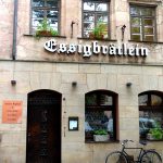 Unser Stadtbummel begann unterhalb der Burg in der Albrecht Dürerstr., vorbei am Restaurant Dürer – unsere studentischen Skatkneipe hat sich inzwischen leider in eine Touristenfalle verwandelt – was aber die Erinnerungen an lange, verrauchte Abende mit viel Spaß und wenig Geld nicht trüben konnte. Der Weg führte uns den Burgberg hinunter an die Pegnitz, wo das malerische Weinstadel weitere Erinnerungen weckte – in der früheren Mensa wurden wir damals mit fränkischen Köstlichkeiten verwöhnt – Schäufele mit fränkischen Klößen, Stadtwurst mit Musik, die Nürnberger Rostbratwürstchen mit Kraut etc. sind unvergesslich.