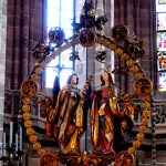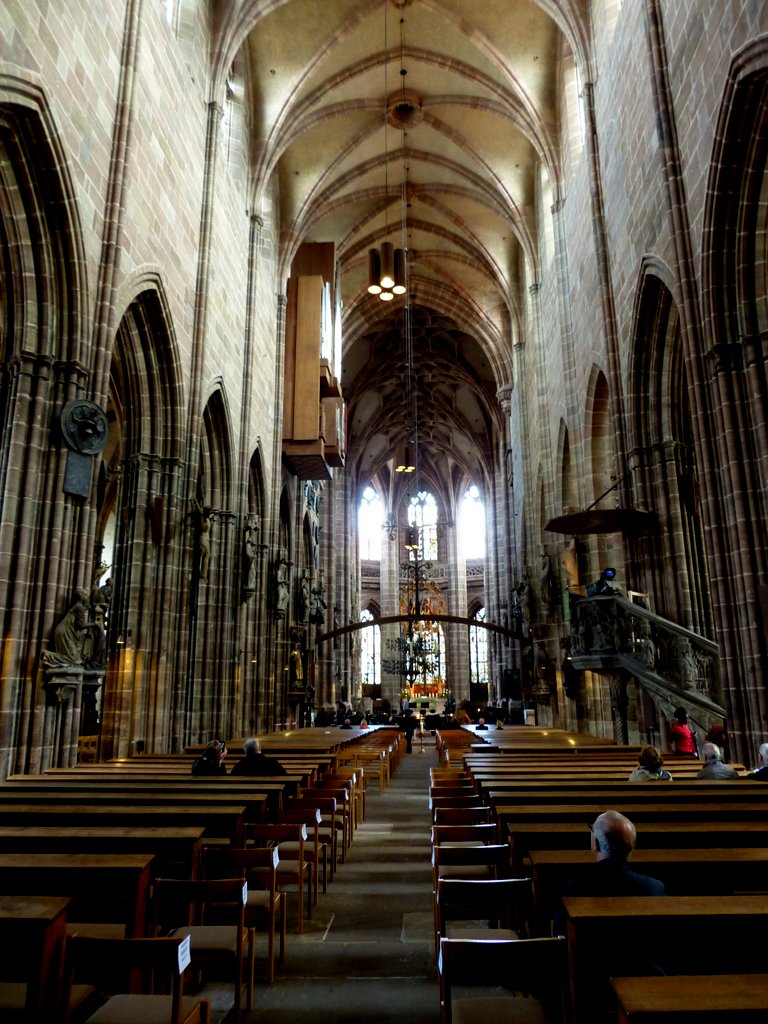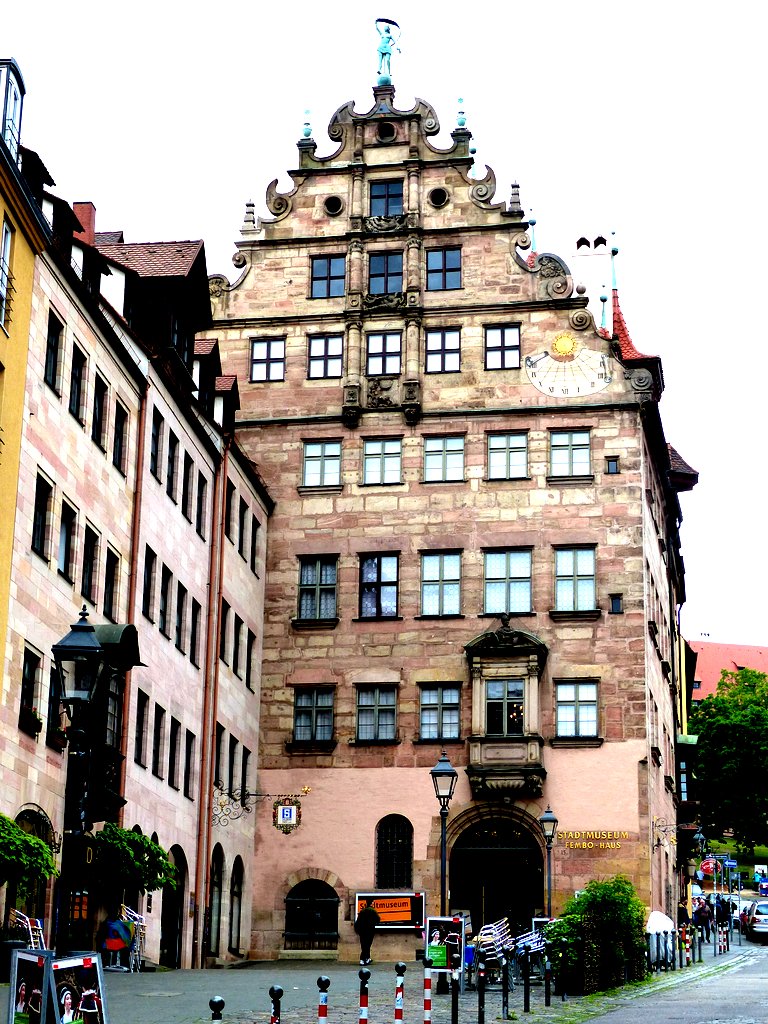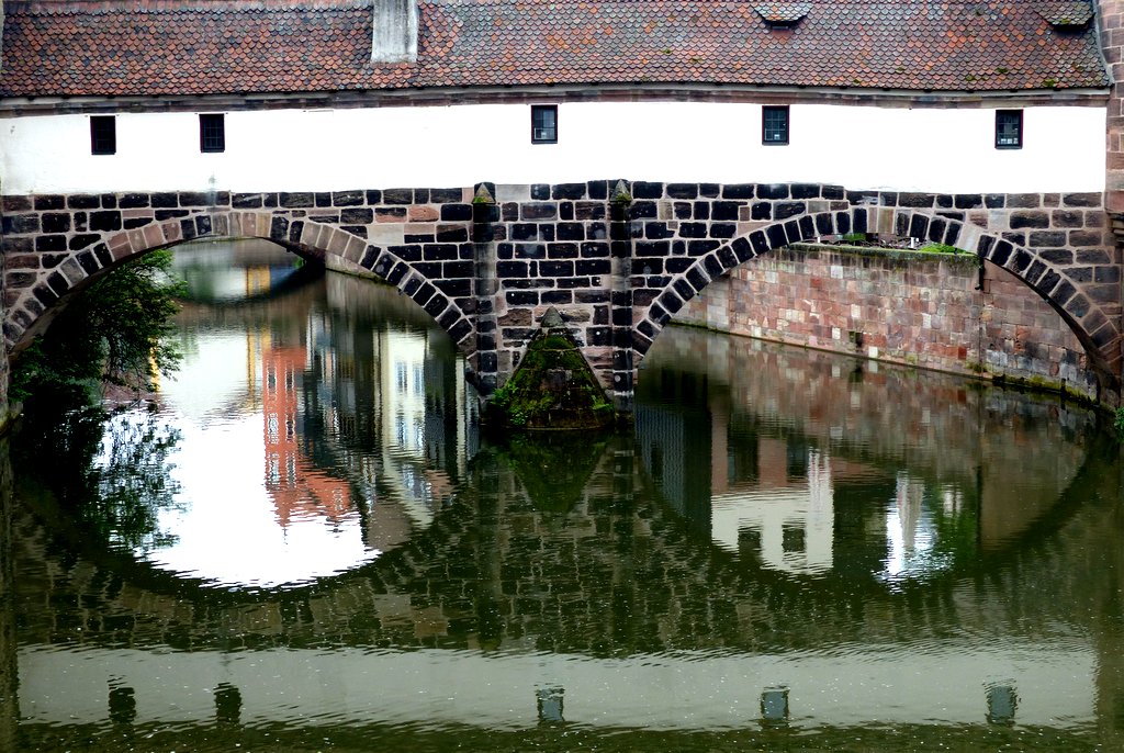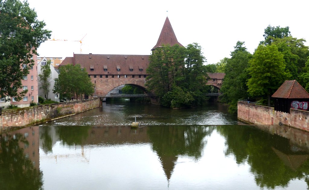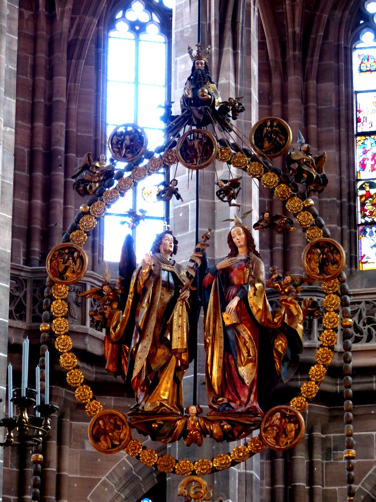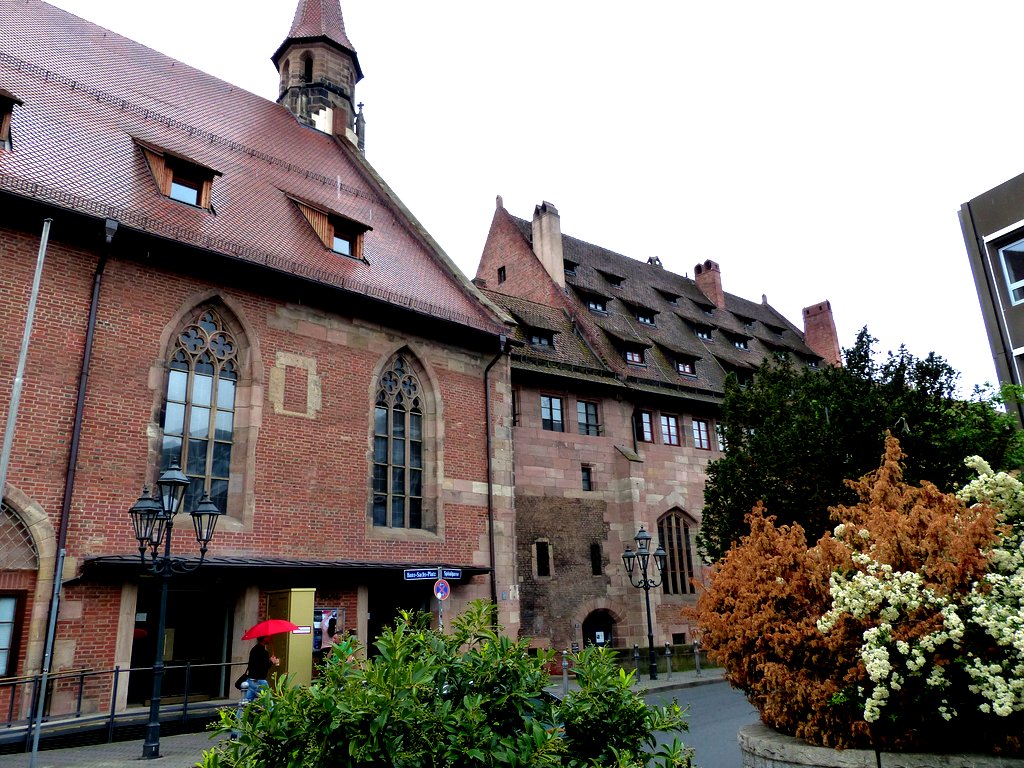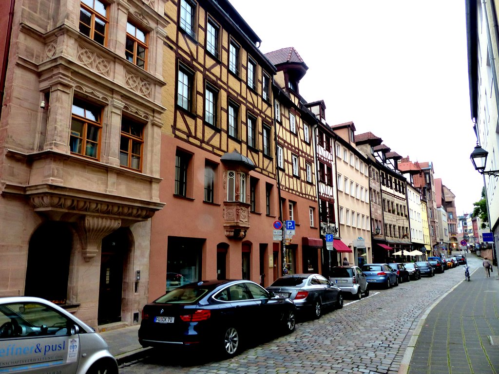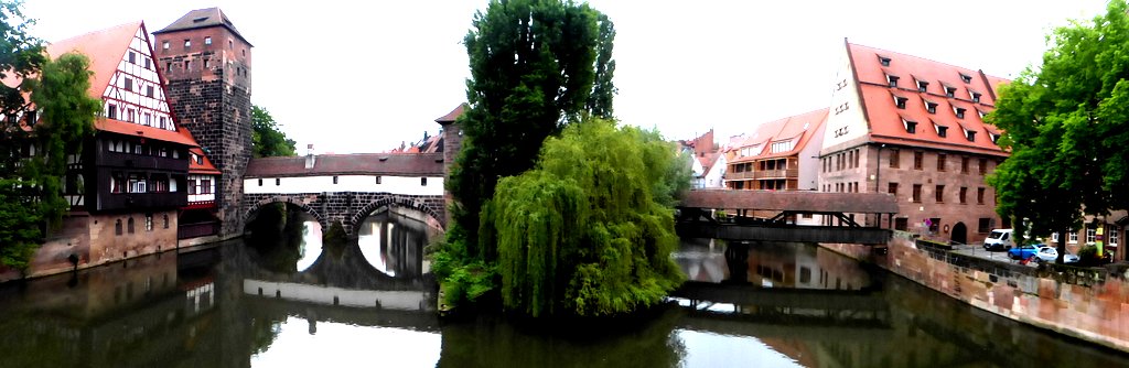 An dieser für mich malerischsten Ecke von Nürnberg, mit der alten Holzbrücke über die beiden Pegnitzarme, früher als Henkersteg genutzt, beginnt  der „mittelalterliche“ Spaziergang durch die engen, wunderbar restaurierten Gassen, mit vielen kleinen Geschäften, Galerien und Kneipen. Hier ist man im Herzen der architektonischen, handwerklichen und künstlerischen Nürnberger Blütezeit des 15. und 16. Jahrhunderts. In den wunderbaren  gotischen Kirchen St. Sebaldus, St. Lorenz und der Frauenkirche kann man die Kunstfertigkeit der alten Meister bewundern – am bekanntesten ist  der englische Gruß von Veit Stoß in der Lorenzkirche.