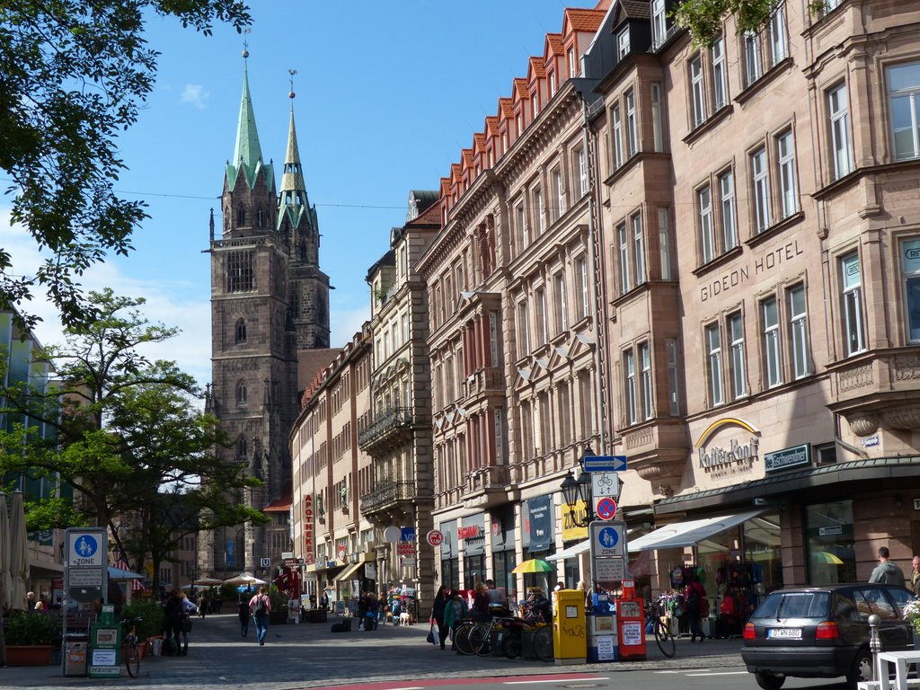 Wir verließen für einen Augenblick diesen alten Teil von Nürnberg und wechselten in die Karolinenstr., wo  heute das alltägliche Geschäftsleben pulsiert. Beim Platzhirsch, dem Bekleidungshaus Wöhrl, habe ich 1968 meine berufliche Karriere begonnen und hatte viele Jahre später das Vergnügen, im Aufsichtsrat der Wöhrl AG zu sitzen. Ein paar Schritte weiter macht inzwischen eine weitere meiner früheren Firmen, das moderne Breuninger Bekleidungshaus, dem Platzhirsch Wöhrl Konkurrenz. Aber „da Konkurrenz das Geschäft belebt“, haben sich zwischenzeitlich wohl Kunden und beide Firmen aneinander gewöhnt. Ich fand es witzig, dass sich ausgerechnet hier in Nürnberg drei Stationen meines beruflichen Lebens treffen  – vom Studium über den ersten und letzten Job in der Geschäftsleitung von bekannten Handelsunternehmen.