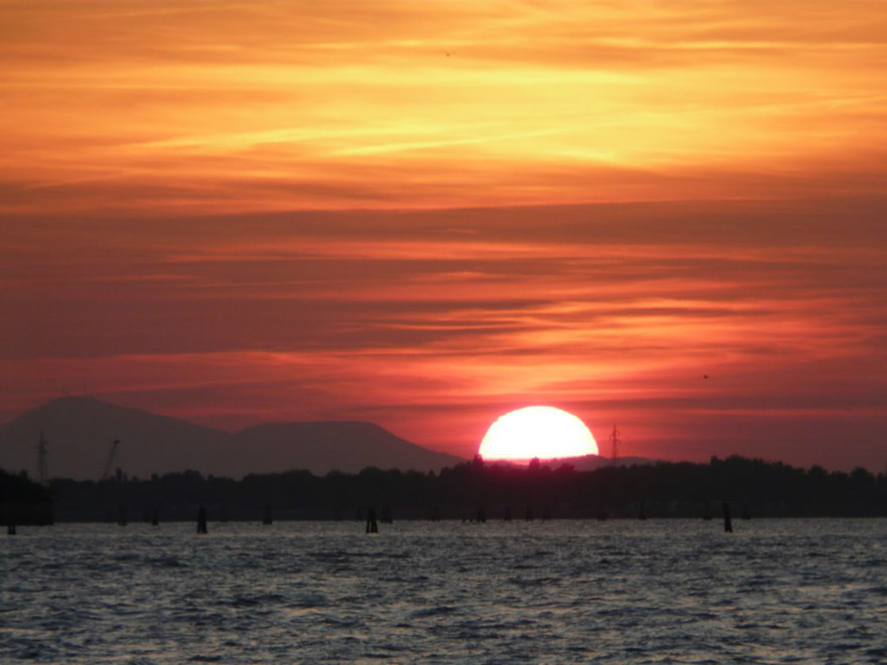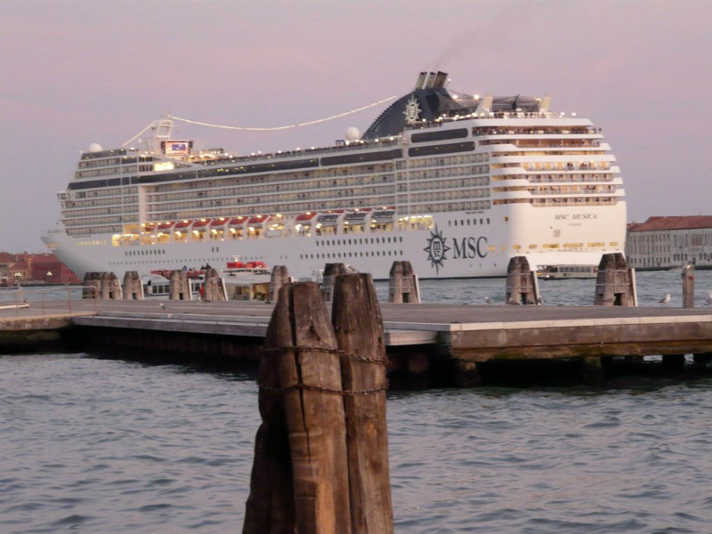 Gegen Abend bekommt die Szenerie dann etwas Majestätisches, wenn die riesigen Kreuzfahrtschiffe langsam vorbeigleiten und für Momente den Himmel in den schmalen Gassen verdunkeln. Es ist eindrucksvoll, wie elegant diese schwimmenden Städte von zwei Schleppern, einem vorn und einem hinten, durch die schmale Lagune navigiert werden – Musikfetzen von den diversen Decks wehen herüber, Hunderte von Passagieren stehen an der Reling und winken – kaum beachtet von den Einheimischen, die dieses Schauspiel gewohnt sind. Wir dagegen können uns kaum satt sehen, zumal ein fantastischer Sonnenuntergang das Ganze in ein Lichtspektakel verwandelt.