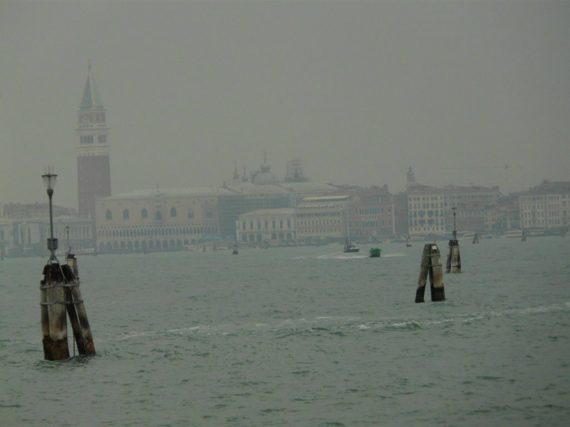 Am nächsten Morgen starten wir erwartungsvoll zum Besuch der Biennale. Wir fahren mit dem Vaporetto von der Haltestelle Accademia aus, am Markusplatz vorbei zu den Giardini, dem traditionellen Ausstellungsgelände der Biennale. Wir wundern uns, wie wenig Leute dort mit uns aussteigen, bis wir am Eingang auf ein Schild stoßen „Montags geschlossen“. Da kommen also die Besucher aus der ganzen Welt zu dieser berühmten Biennale – und dann das!