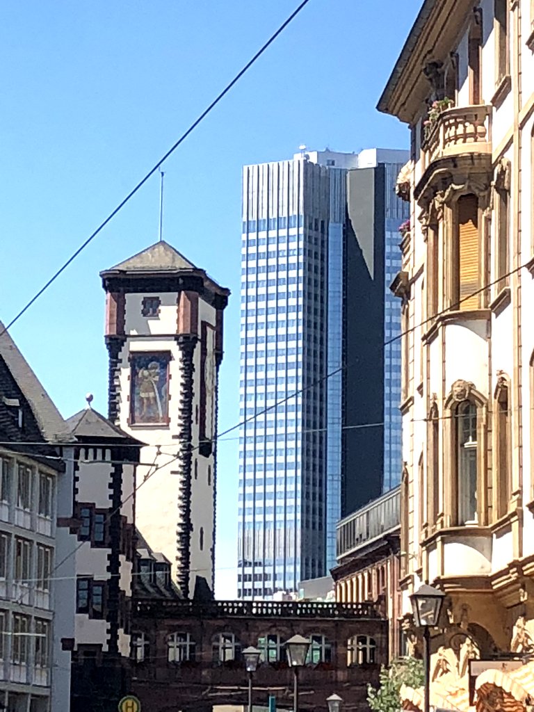 Die viel beschriebene, komplette Neugestaltung eines Teils der Frankfurter Altstadt  im Umfeld des Römers stand kurz vor der Eröffnung, er war begehbar, auch wenn überall noch gewerkelt wurde und viele Läden leer standen.