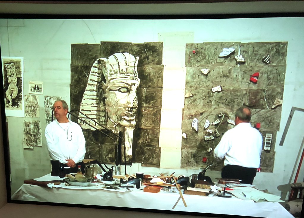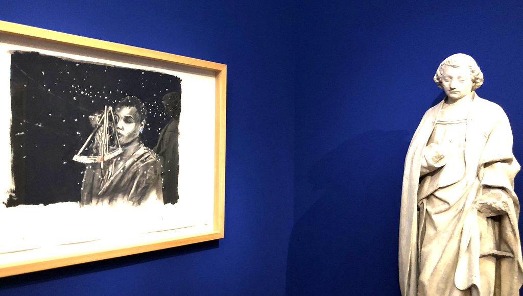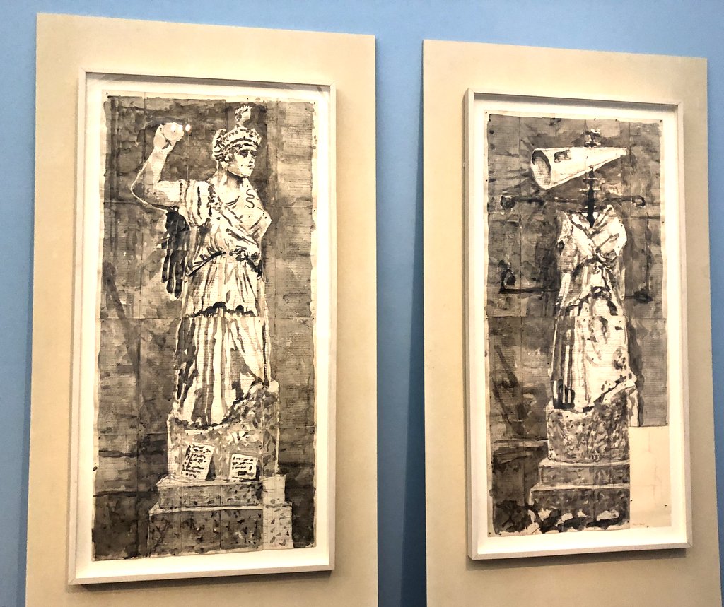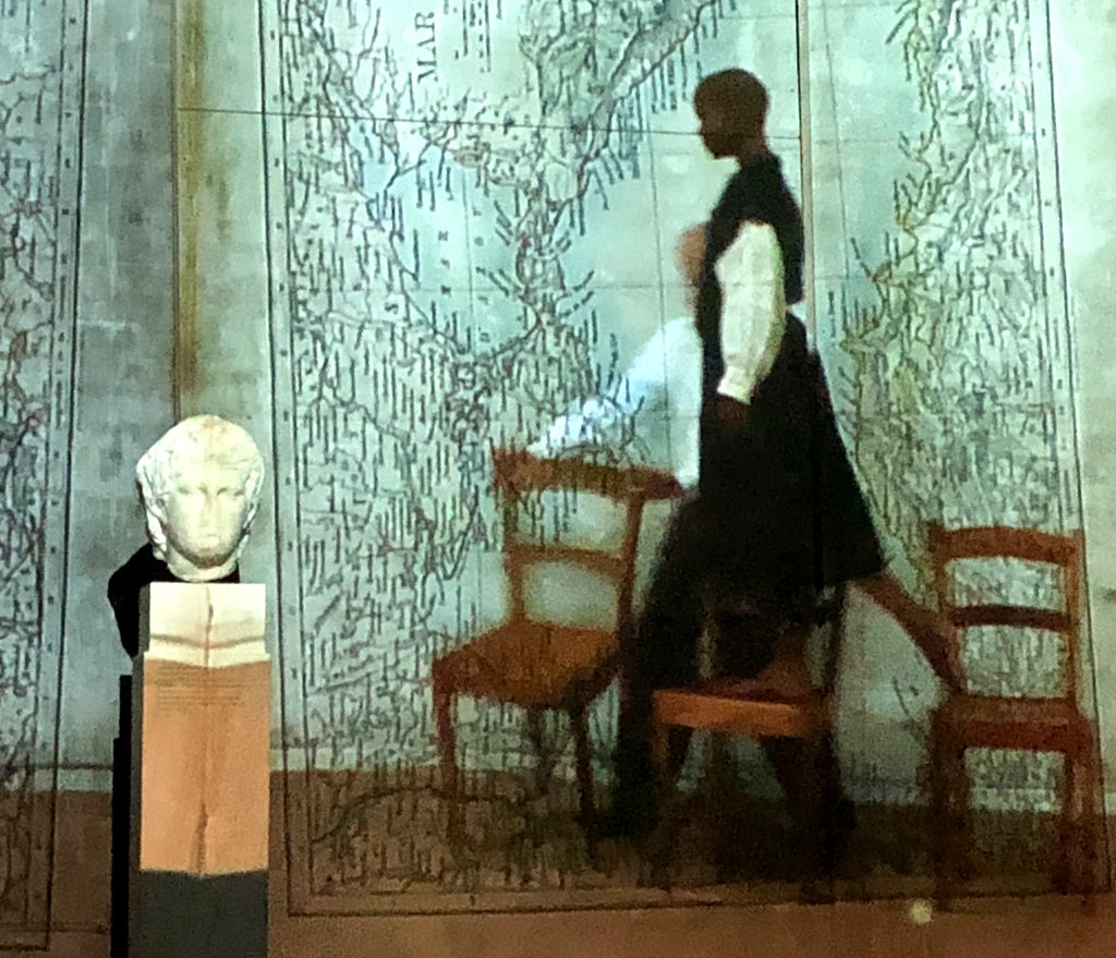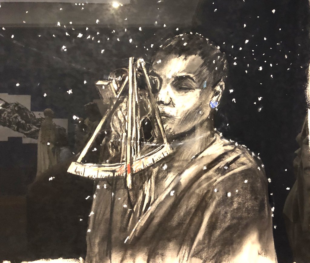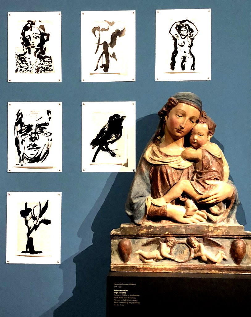Das Liebieghaus beherbergt Skulpturen aus 5000 Jahren, die Kentridge gekonnt und trickreich in seine Filmprojektionen integriert und sie mit seinen Bildern, Holz- und Linolschnitten, Lithografien und Papierskulpturen, verbunden mit Musik, künstlerisch ergänzt. Man hat manchmal das Gefühl, dass die antiken Figuren erstaunte Zuschauer und Zuhörer dessen sind, was Kentridge um sie herum inszenierte!
