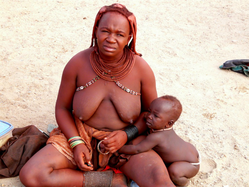 Wir werden zunächst von putzigen Pelikanen begrüßt, die sich fotogerecht in Pose stellen. Dann werden wir plötzlich mit dem traditionellen Afrika konfrontiert – eine Gruppe von Himba-Frauen präsentieren sich mit ihren Kindern in einer Art Minidorf und bieten dort Schmuck und Gebrauchsgegenstände an. Die Frauen sind traditionell be- oder besser entkleidet, d.h. halbnackt und der ganze Körper ist dick mit roter Ockerfarbe eingerieben. Obwohl das Ganze natürlich auf Touristenfang ausgerichtet ist, erzählt uns unser Pilot, dass die Himbas noch genau so,wie vor hundert Jahren in ihrer ursprünglichen Wüstenumgebung leben und sich nur bedingt an die Zivilisation angepasst haben. Wie dem auch sei –nach einem kurzen Handel von 50 auf 20 Dollar dürfen wir fotografieren und bringen so einen Hauch ursprüngliches Afrika mit.