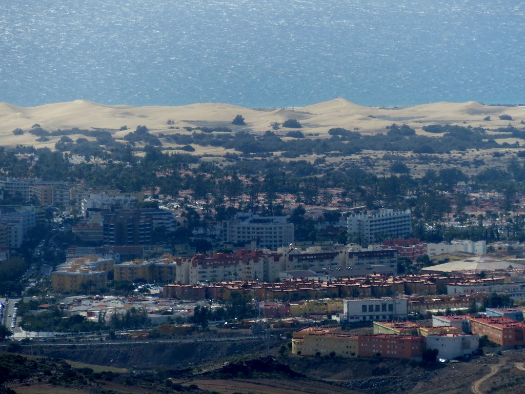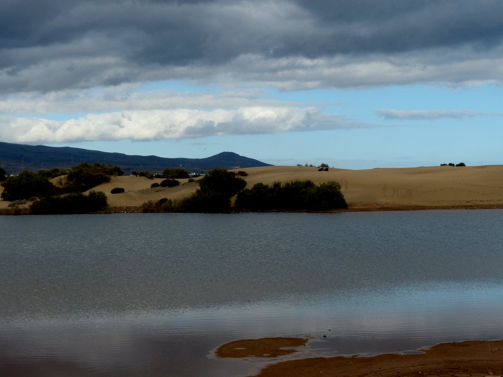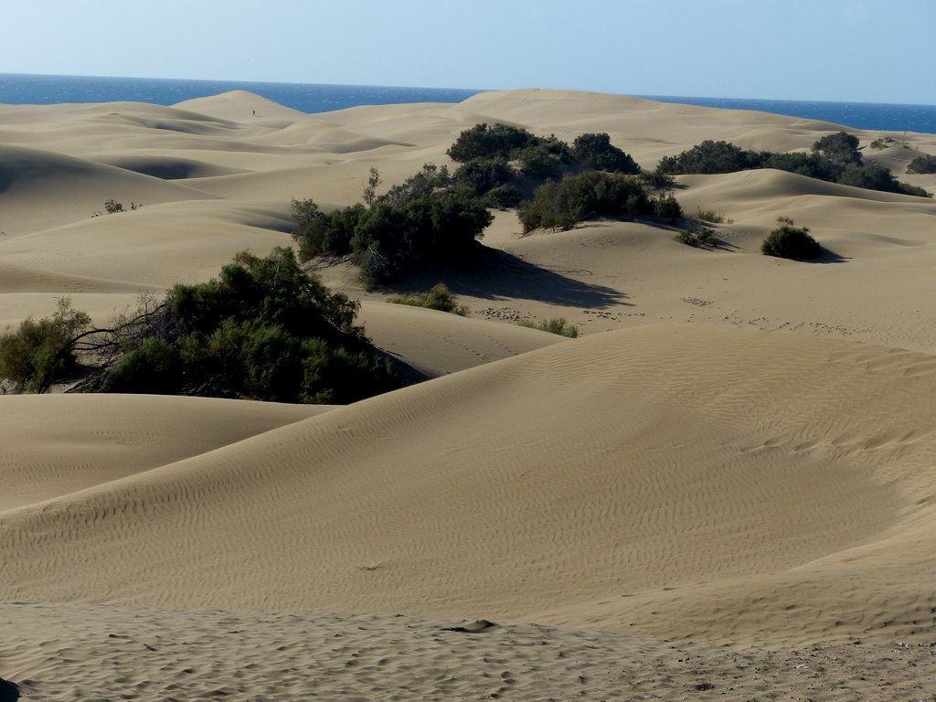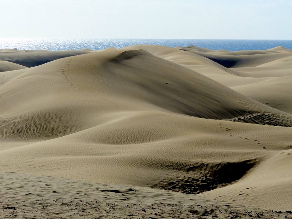 Wir ließen uns natürlich den Besuch der berühmten Dünen von Maspalomas nicht entgehen. Obwohl wir auf eine ausgiebige Dünenwanderung verzichteten, waren die Ausblicke von verschiedenen Standorten aus auf diese ausgedehnte Dünenlandschaft, das Spiel von Wind und Wetter, die sich verändernden Farben und Formen je nach Lichteinfall, den Kontrast des Meeres, der hohen, weiß / beigen Dünen vor dunklen, wolkenverhangenen Bergen im Hintergrund – wunderbar und unvergesslich. Die Tatsache, dass die männlichen, gleichgeschlechtlichen Paare an und in den Dünen durchaus in der Mehrheit waren, gab dem ganzen Szenario seine besondere Note.