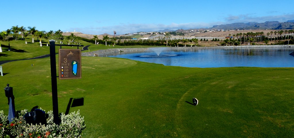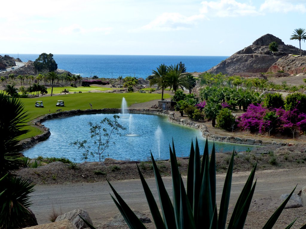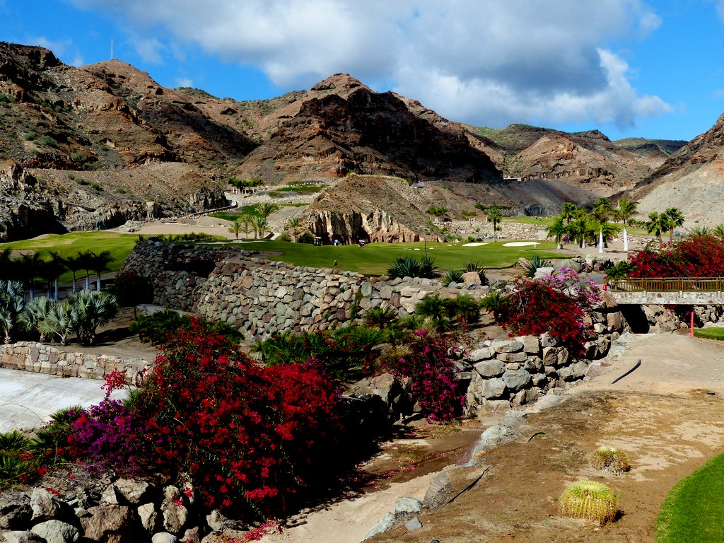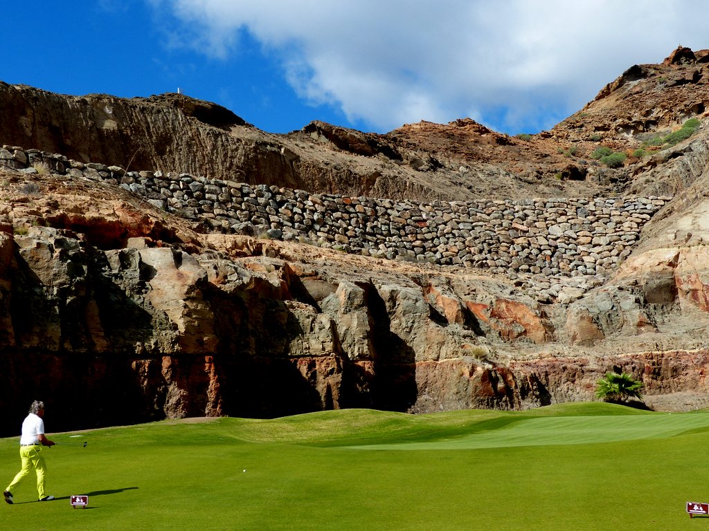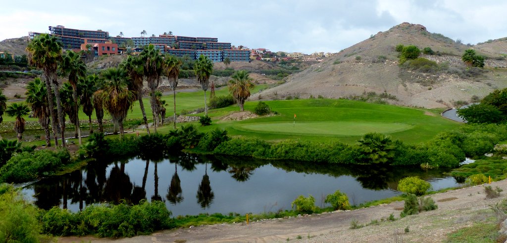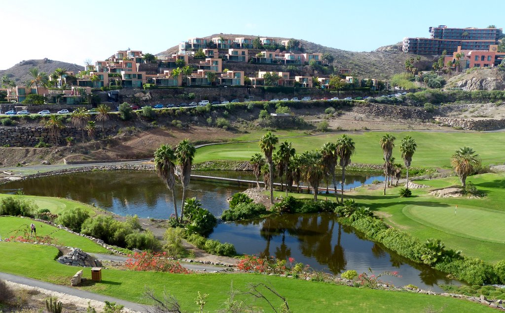Der Par 71 Golfplatz liegt mit seinen 18 Löchern malerisch über der Bucht von Meloneras. Die ersten 9 Löcher sind meerabgewandt mit wunderbarem Blick auf die umliegenden Berge, die spektakulären zweiten 9 laufen am Meer entlang, der Spieler hat deutlich mehr mit dem Wind zu kämpfen und muss darüber hinaus mehrere breite Schluchten überwinden. Mancher bis dahin gute Score wird hier entweder vom Winde verweht oder die Bälle verschwinden auf Nimmerwiedersehen in einem tiefen Tal. Zudem fordern die beiden letzten Bergauf-Löcher die letzten Kraftreserven, speziell wenn man der Versuchung widerstand, bequem mit dem Golfcart zu fahren.