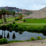 Eine landschaftliche Steigerung zum Meloneras-Golfplatz bietet  Sheraton Salobre Golf mit zwei !8 Lochplätzen, Süd und Nord. Die Plätze sind ca. 10 km von Meloneras entfernt und schnell über die Autobahn zu erreichen. Nach der Ausfahrt Salobre Golf geht es kurvenreich in die felsigen Berge, so dass man sich zunächst nicht vorstellen kann, dass es hier Golfplätze geben soll. Dann öffnet sich plötzlich die Landschaft und das Grün der Fairways kontrastiert mit dem Schwarzgrau der Fels- und Wüstenlandschaft und dann wieder einer üppigen Vegetation.
