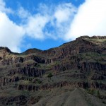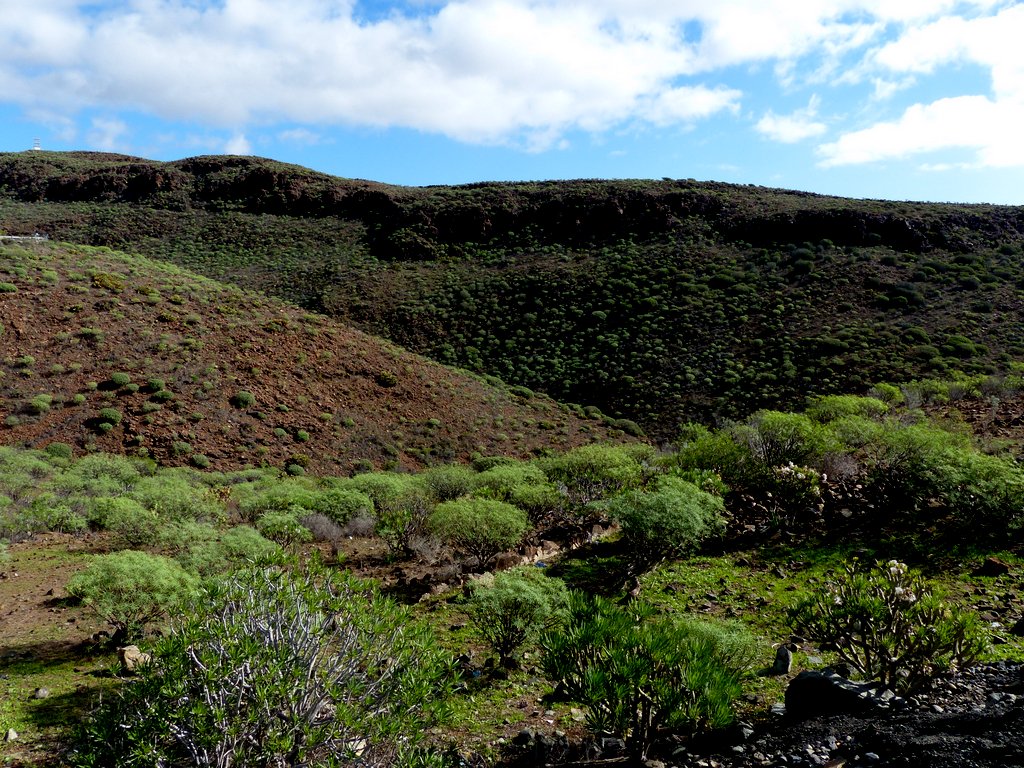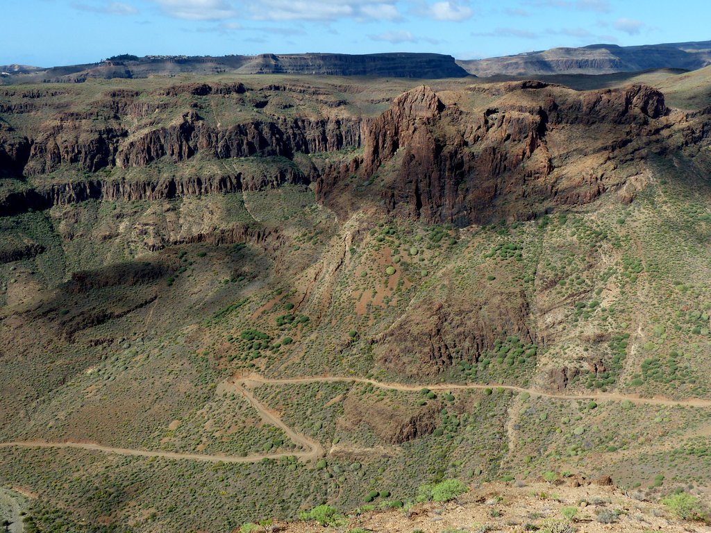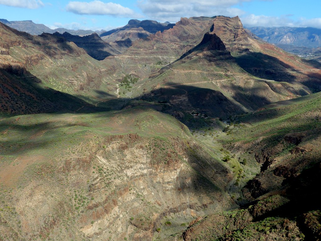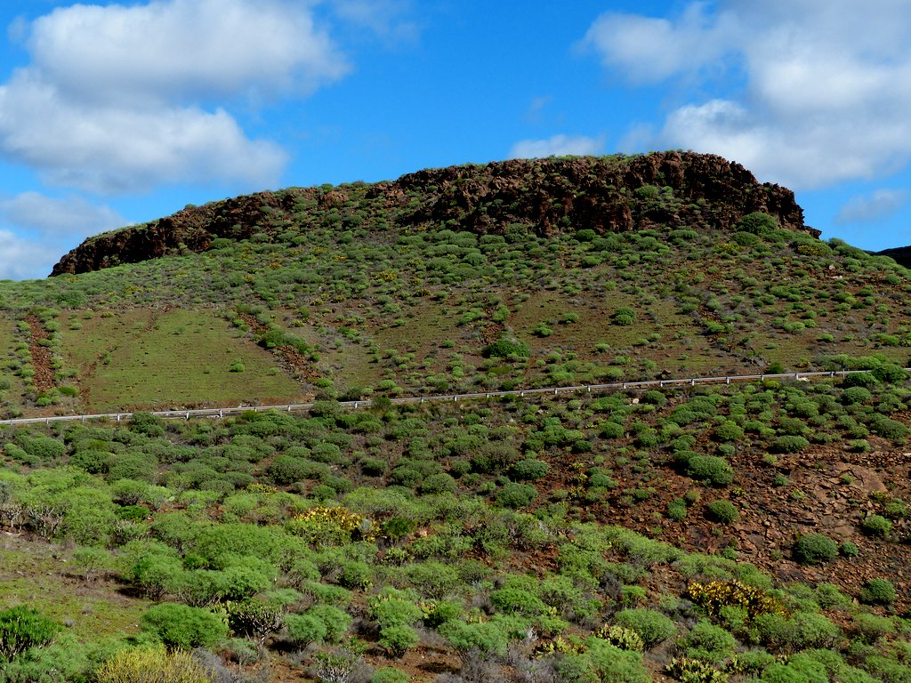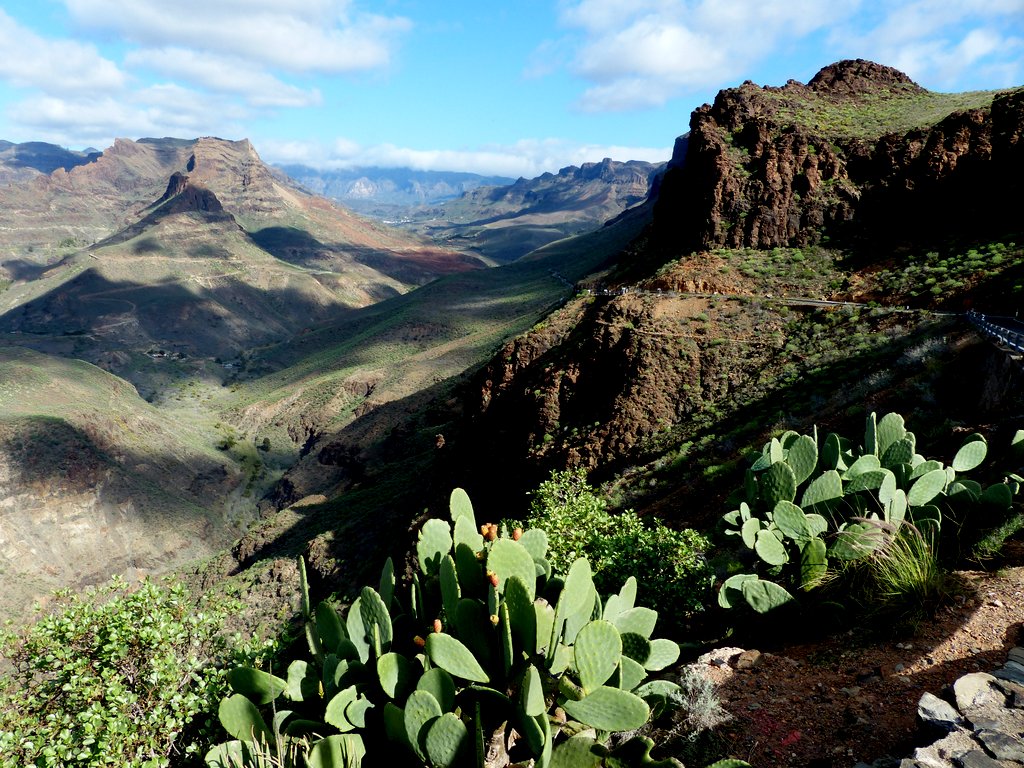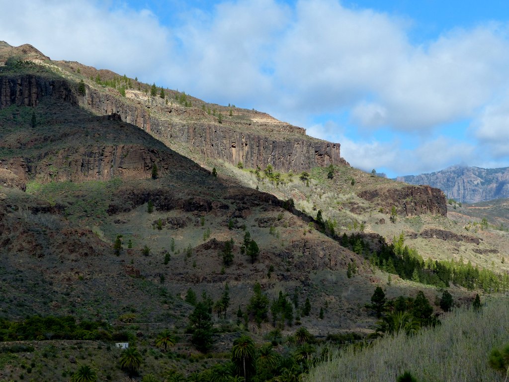 Eine vielfältige Vegetation erkämpfte sich Schritt für Schritt ihren Lebensraum, was sicher auch mit von Zeit zu Zeit  ausgiebigen Regenfällen zusammenhing. Folgerichtig stießen wir in den Bergen auf oasenähnliche, grüne, fruchtbare Täler, z.B. den von Palmenoasen durchzogenen Barranco de Fataga.