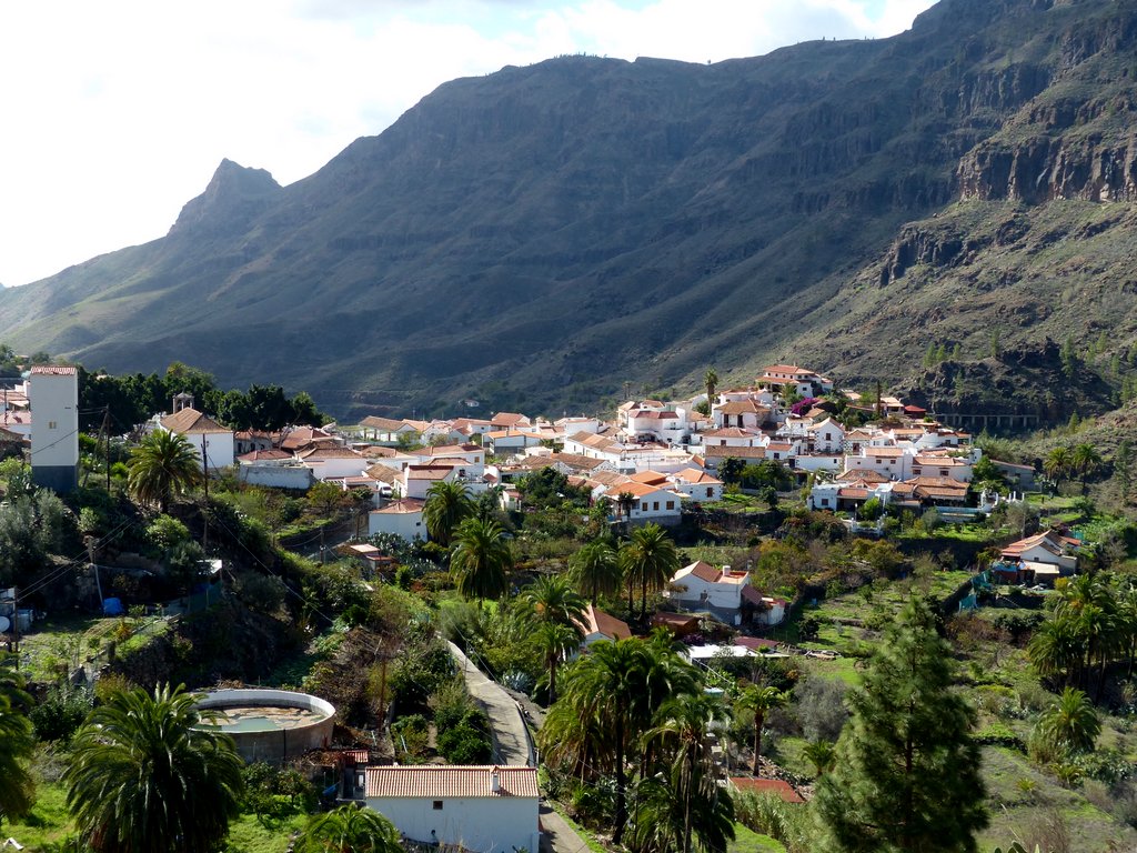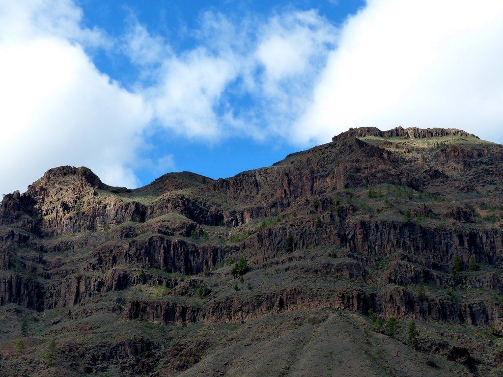 Ansonsten waren wir letztlich froh, dass wir dem touristischen Rummel in Maspalomas durch unsere Fahrt ins bergige Hinterland der Insel entfliehen konnten. Wir entschieden uns für eine Halbtagesfahrt nach Fataga, einem der schönsten Bergdörfer des Südens. Rückblickend war der Weg das Ziel! Die kurvenreiche Fahrt durch diese wunderbar vielfältige und trotz Vulkangesteins farbenfrohe Berglandschaft war ein Höhepunkt unserer Reise. Überraschenderweise waren die teilweise sehr schroffen Felsformationen von unterschiedlichsten Grüntönen geprägt.