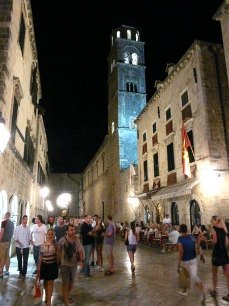 Wir wurden zwar durch die Ausblicke auf die wunderbare Küstenlandschaft für den Zeitverlust entschädigt, kamen aber erst bei Dunkelheit in Dubrovnik an. Unser traditionsreiches Hotel Argentina lag direkt an der Steilküste oberhalb der Altstadt von Dubrovnik, so dass diese „Perle der Adria“ im hellen Lichterschein traumhaft unter uns lag. Das Abendessen im Schatten der alten Stadtmauern und der anschließende späte Bummel durch die romantischen Gassen der Altstadt bleiben unvergesslich. Die Straßen waren voll von jungem, fröhlichem Volk auf dem Weg zu den diversen Freiluftdiscos und sonstigen Vergnügungen. Als wir schließlich erschöpft auf der Terrasse unseres Hotels zu später Stunde das letzte Bier des Abends tranken, den Musikfetzen aus der Ferne lauschten und kaum den Blick vom nächtlichen Dubrovnik lösen konnten, waren wir längst dem Charme und Zauber dieser unvergleichlichen Stadt erlegen, gemischt mit dem nostalgischen Gefühl „man müsste nochmals jung sein!“