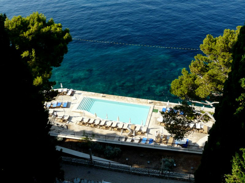 Früh am Morgen stiegen wir an der Steilküste über viele Stufen und Terrassen hinab ins Meer und genossen das glasklare und warme Meerwasser – mit einem fantastischen Blick auf die in der Morgensonne glänzende Altstadt Dubrovniks als Zugabe. Diese früher Ragusa genannte Stadt hat mit ihren imposanten Festungsmauern und architektonischen Bauten und Kunstschätzen aus vielen Jahrhunderten das Potential, ein Reiseziel der „internationalen Weltklasse“ zu werden, was sich auch am Prädikat „Weltkulturerbe“ dokumentiert.