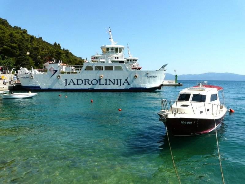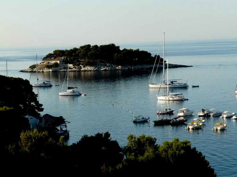 Unsere Fahrt ging über die Küstenstraße zurück nach Norden, wo wir im Ort Plose die Autofähre zur Insel Hvar bestiegen. Nach 30 minütiger Überfahrt landeten wir in Sucuray und durchquerten von dort aus die ca. 50 km lange, sehr ursprüngliche Insel bis zu unserem Reiseziel in der Stadt Hvar. Die Insel ist in weiten Teilen menschenleer, die schmale, unbefestigte Straße schlängelt sich endlos durch eine hügelige Landschaft aus Pinienwäldern, Olivenhainen, Weinanbau und duftenden Lavendelfeldern mit fantastischen Ausblicken auf kleine Buchten und Strände – ein Fest für alle Sinne, hier kann man die Seele baumeln lassen!