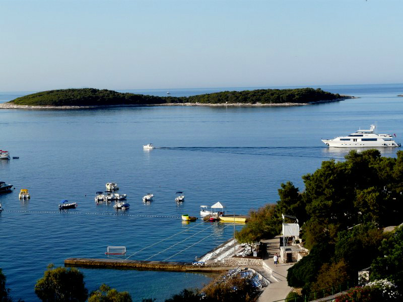 Unser Strandhotel war wiederum fest in nordischer Hand, hier war groß, blond und sportlich Trumpf. Als wir am Abend in den eigentlichen Ort Hvar kamen, erlebten wir eine diesbezügliche Steigerung: „Party pur“ – hier feierten junge Engländer, Schweden, Finnen, Norweger etc. vor historischer Kulisse laut und lustig ihren Sommerurlaub. Offenbar kamen auch viele junge Gäste von den Schiffen unterschiedlichster Größen, die im Hafen und in den nahen Buchten ankerten. Wir erfuhren, dass diese hübsche Inselstadt eine der höchsten Besucherzahlen an der dalmatinischen Küste aufweist – was sich auch am nächsten Morgen auf der Fähre zeigte, wo viel übernächtigte Jugendliche versuchten, ein bisschen Schlaf nachzuholen.