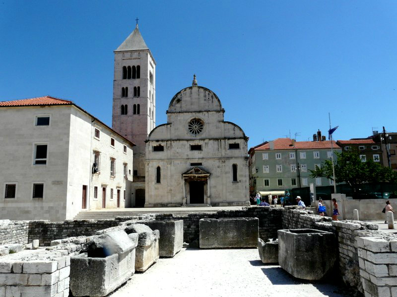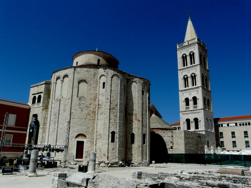 Unsere Reise führte uns weiter nach Zadar, wo wir zunächst den lebhaften Hafen und dann die wunderschöne Altstadt besichtigten. Die auf einer früheren Insel und heutigen Halbinsel liegende Altstadt ist eine Mischung aus römischer, romanischer, gotischer, Renaissance- und Barockarchitektur, die man entspannt bummelnd auf sich wirken lassen kann. Hier herrschte keine touristische Hektik, von Hochsaison keine Spur, das Leben geht seinen normalen, beschaulichen Gang. Wir wurden von einem befreundeten Polizisten empfangen, der uns durch die Sehenswürdigkeiten der Stadt führte und uns beim Kaffee erklärte dass in Zadar die hübschesten Frauen Kroatiens leben würden! Wir haben ihm nicht widersprochen…