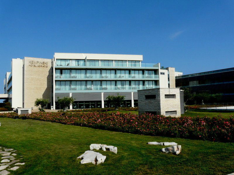 Unsere anstrengende Tagestour führte uns durch das Landesinnere weiter in Richtung Istrien. Die Vegetation änderte sich mehrfach, zunächst durchfuhren wir ein waldreiches Gebiet, das im Winter sehr schneereich sein soll, bevor wir dann in das mediterrane Klima Istriens eintauchten und auf eine Vegetation stießen, die man von der italienischen Küste her kennt. Unser Tagesziel war das Örtchen Umag, wo uns ein modernes Kempinski-Hotel empfing, das malerisch an einer Bucht lag, mit Blick auf die gegenüberliegende slowenische Küste. Ein erfrischendes Bad im warmen Meer hatten wir uns nach dieser langen Tagestour mehr als verdient. Der grobe Kieselstrand trübte das Vergnügen ein bisschen, da wir beim Gang ins Meer ohne das entsprechende Schuhwerk etwas plump und unbeholfen daher kamen.