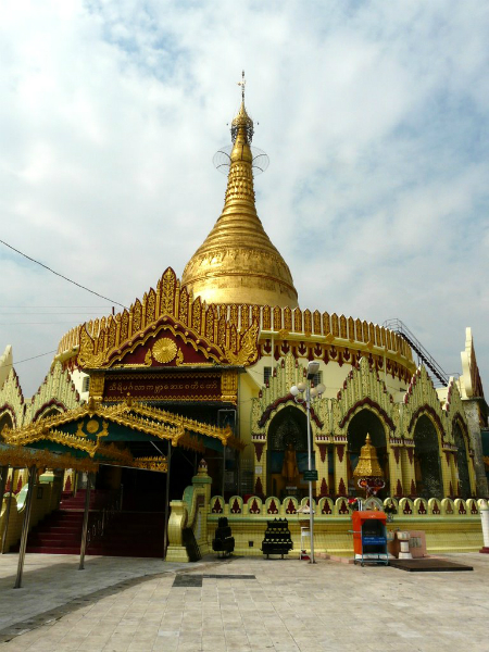 Danach begann sofort ein strammes Besichtigungsprogramm kreuz und quer durch Rangun. Am Vormittag war „Pagodentime“, beginnend mit dem Besuch der eindrucksvollen Botdung Pagode am Fluss, in der Haarreliquien Buddhas aufbewahrt werden, dann der Kaba Aye Pagode (Weltfriedenpagode) und der Kyauk- htat-gyi Pagode mit einem riesigen liegenden Buddha. Nach 3 Pagodenbesuchen und ausführlichen Erläuterungen unserer Reiseleiterin Mya waren wir an unserem ersten Urlaubstag von der Vielfalt und Pracht ziemlich erschlagen. Da die Pagoden von der Bevölkerung sehr gut besucht waren, bekamen wir allerdings auch einen ersten Eindruck von der Bedeutung der Religion für die Menschen und deren selbstverständlicher Frömmigkeit.