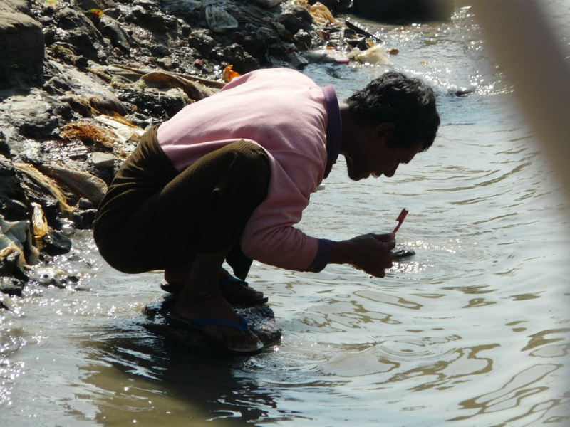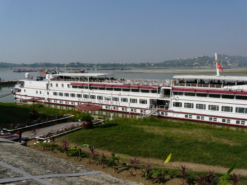 Schon von Weitem sah man die Brücken, die den Fluss überqueren und dahinter glänzten unzählige Pagoden und deren goldene Stupas in der Sonne. Was für ein Kontrast zur bisherigen geruhsamen Reise, als wir schließlich im geschäftigen Hafen außerhalb von Mandalay ankerten. Ein reger Geschäftsverkehr mit entsprechendem Lärm und Müll kontrastierten mit den sich im Wasser spiegelnden Pagoden und Tempeln auf den nahen Hügeln beider Flussufer.
