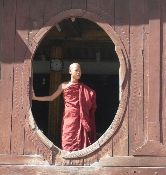 Wir bestiegen am kleinen Flughafen in Heho wieder einen bequemen Kleinbus und ließen uns durch eine schöne, fruchtbare Landschaft in Richtung Inle Lake chauffieren. Unterwegs besuchten wir eine alte Pagode mit Wandmalereien und unzähligen kleiner Buddhas, die einer Vielzahl von Spendern aus aller Welt zu verdanken sind.. Im gegenüberliegenden Holzkloster mit ovalen Fenstern, bewunderten wir erneut die Disziplin und Ordnung bei den überwiegend jugendlichen Mönchen und trugen uns ebenfalls namentlich in eine Spenderliste ein.