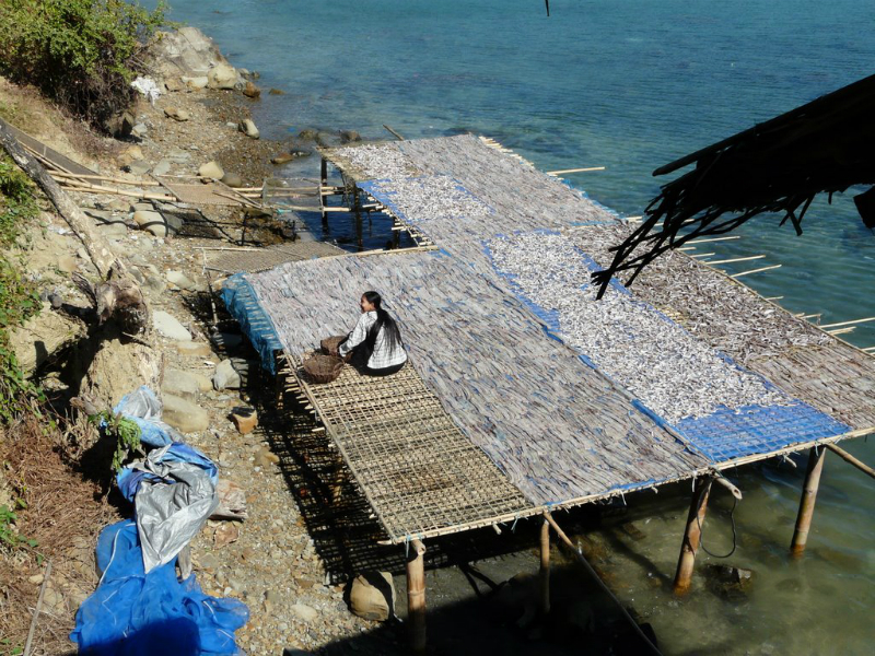 Mehr Spaß machte ein weiterer Fahrradausflug in das am Ende der Bucht liegende große Fischerdorf, das vom Tourismus noch völlig unberührt ist, da die Straße dorthin abenteuerlich schlecht war. Insofern konnten wir hier das ungefilterte und ungestörte Arbeitsleben der Bevölkerung nochmals entspannt studieren. Am Hafen wurden vormittags die Fischerboote entladen, der Fang wurde sofort im Eis einer nahen Eisfabrik konserviert. An einer anderen Stelle wurde ein Fang zunächst nach Größe und Qualität sortiert, die kleinen Fische, Krabben etc. wurden in der Sonne getrocknet, die großen Fische wurden sofort auf den Markt geliefert und landeten hoffentlich am Abend auf unseren Tellern.