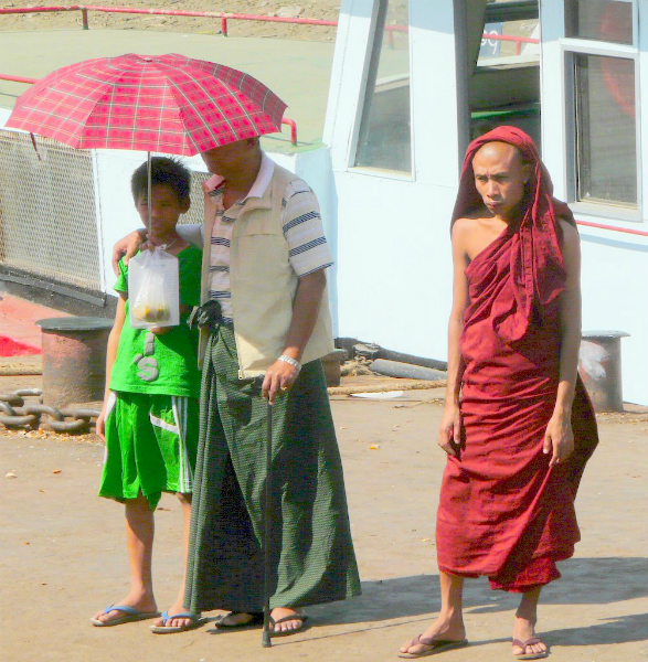 Am nächsten Morgen ging die Flussfahrt in Richtung Mandalay weiter, an Bord war weiterhin Relaxen angesagt, die Landschaft an beiden Ufern wurde immer fruchtbarer und der Verkehr auf dieser wichtigsten Wasserader Burmas nahm zu.