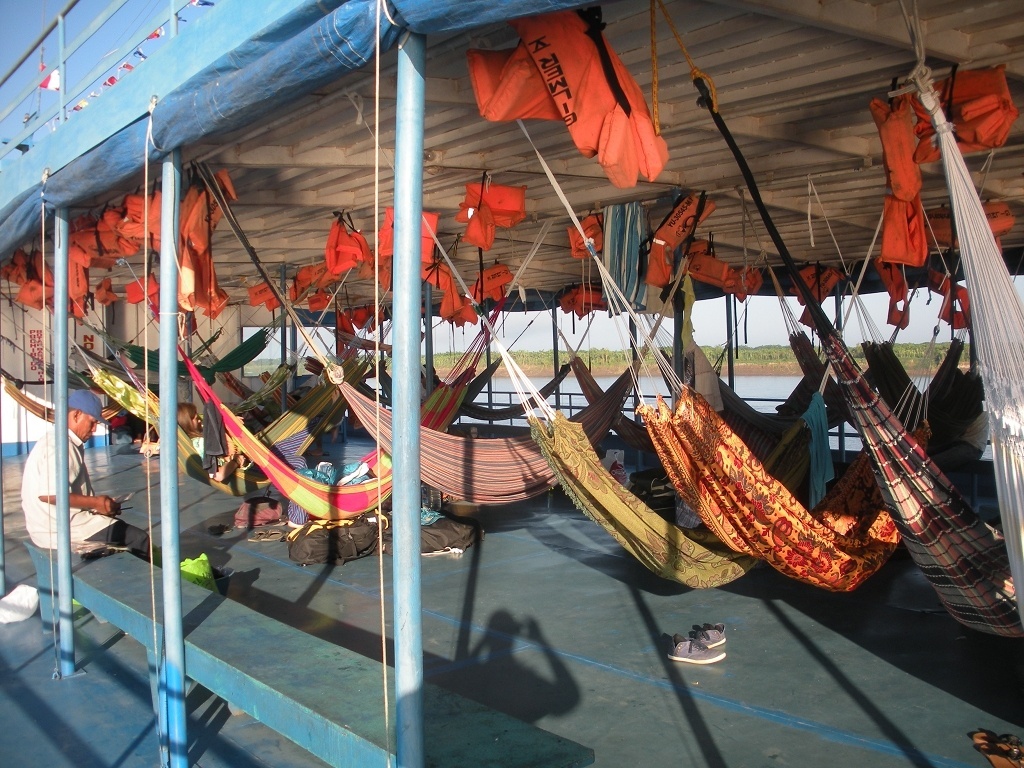 Wir nehmen ein Boot zurück nach Yurimaguas. Die Fahrt soll drei Nächte und zwei Tage dauern und wieder schlafen wir in Hängematten. Tagsüber bräunen wir uns unter der tropischen Sonne und beobachten Flussdelfine, unter anderem ein paar rosafarbene. Nachts zeigt sich der Sternenhimmel in seiner ganzen Pracht.