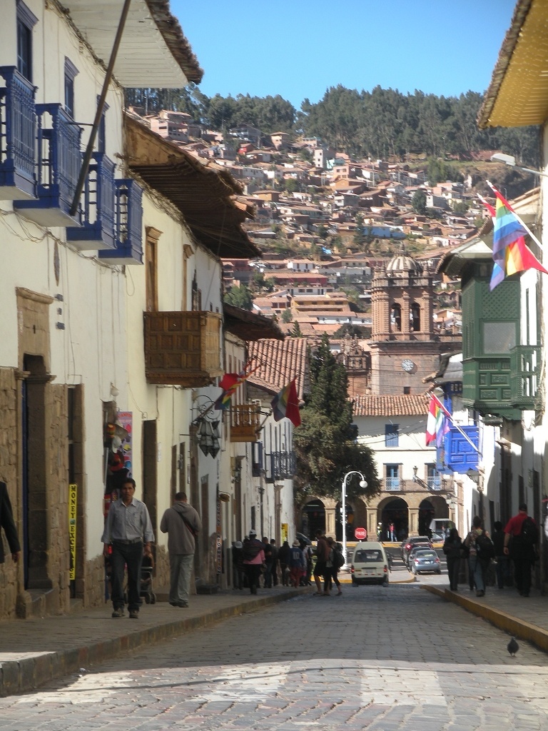 Endlich in Cusco angekommen und ein bisschen angestrengt von den 3416 Höhenmetern, begeben wir uns auf Entdeckungstour. Cusco ist die Hauptstadt des Inkareiches und ein Touristenzentrum. Das Wort Cusco (Qusqu) kommt aus dem Quechua und bedeutet „Nabel der Welt“. Von hier aus regierten die Inka-Herrscher über ihr Reich. Seit 1983 zählt die Stadt zum UNESCO-Welterbe. Hier oben in den Anden ist das Leben ruhig und die Menschen freundlich. Es gibt viele prächtige Bauten und Plätze zu besichtigen. Die meisten Peruaner arbeiten hier als Bauern und verkaufen ihre frische Ware auf den Märkten der Stadt. Da Peru eines der Ursprungsländer der Kartoffel ist, gibt es unzählige verschiedene Sorten. Viele davon können nur hier in den Anden angebaut werden, da sie aufgrund ihrer geologischen und klimatischen Ansprüche in anderen Weltgegenden nicht gedeihen. Außerdem gibt es Früchte, Käse, allerlei Nüsse und sogar kleine Schlangen in Gläsern sind zu kaufen. Viele Frauen und Kinder tragen die für die Andenregion typischen traditionellen Kleider. Nach unseren erholsamen Tagen in Cusco setzen wir unsere Reise fort.