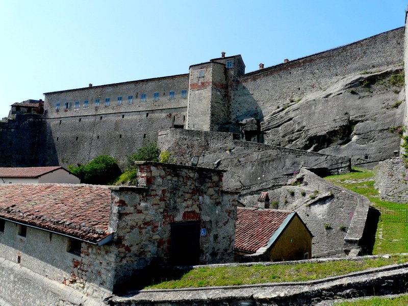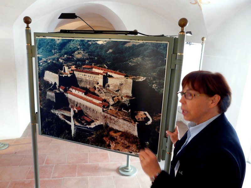 Unsere erste Besichtigung galt dem Örtchen Gavi, das antiken Ursprungs ist und von der wuchtigen Festung Forte di Gavi überragt wird. Die Fahrt nach Gavi führte durch eine sehr hügelige, äußerst malerische Landschaft, die vom Weinbau und mehr oder weniger prachtvollen Weingütern geprägt ist. Das Forte di Gavi erreichten wir auf einem engen und steilen Pfad – in der Hoffnung, dass kein Auto entgegenkommt. Der Besuch der 400 Meter über dem Ort gelegenen Festung aus dem 16. Jahrhundert war aber sehr lohnend, zum einen wegen der schönen Ausblicke auf Gavi und das Tal der lemme, zum anderen weil eine eifrige Führerin mit ihren Schilderungen Staunen und Schaudern beim Gang durch die Festung und die z.T. noch erhaltene Burg aus der Frühzeit erzeugte. Barbarossa hatte sich hier verschanzt, später war die Festung ein Gefängnis mit unvorstellbaren Zuständen.