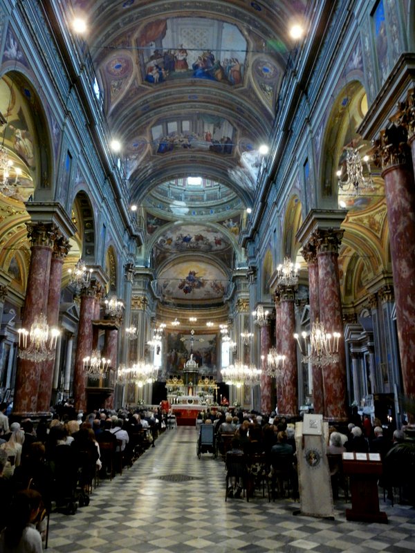 Am Pfingstsonntag fuhren wir nach Ovada, einem ebenfalls uralten Städtchen, mit engen Gassen und einer sehr schönen Kirche, wo gerade der Pfingstgottesdienst abgehalten wurde – vor weitgehend älterem Publikum. Viele junge Leute saßen währenddessen in den zahlreichen Cafes, Kneipen und Restaurants rund um den Kirchplatz und pflegten eine eher virtuelle Frömmigkeit mit ständigem Blick auf ihre Handys.