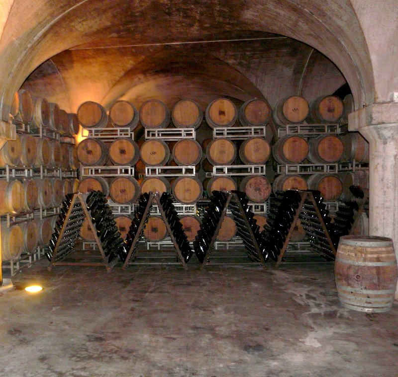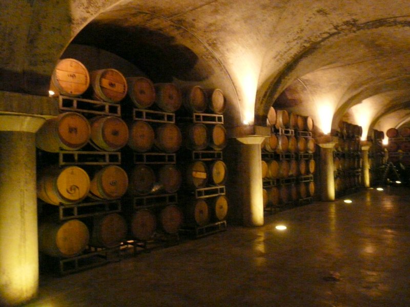 Wenn wir schon beim Wein sind, begeben wir uns doch gleich mal zur Weinprobe in die weitläufigen, romantischen alten Weinkeller, die sich seit Jahrhunderten unter dem Weingut befinden. Hier lagert der „Villa Sparina“ , einer der besten Weißweine Italiens. Er reift 6 Monate in Holzfässern und wird dann in Flaschen abgefüllt und in s.g. Weinpyramiden gelagert. Wir probieren auch den ausgezeichneten Rotwein, der 12–18 Monate im Fass reift und danach einen runden, harmonischen Geschmack entwickelt, zumal vom Jahrgang 2007, der ein Jahrhundertjahrgang war. Abgerundet wird die Weinprobe mit einem Brut, einem sehr eleganten und süffigen Sekt. Die Preise waren erstaunlich moderat, für obigen Rotwein und den Weißwein aus 2010 wurden pro Flasche 9.-€ verlangt – da lacht das Herz des Weinliebhabers.