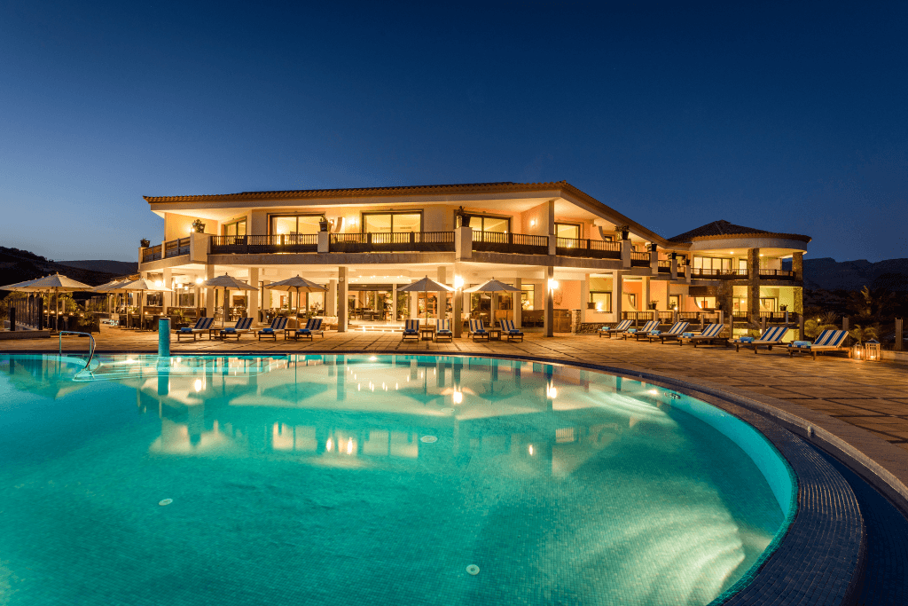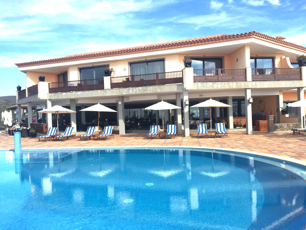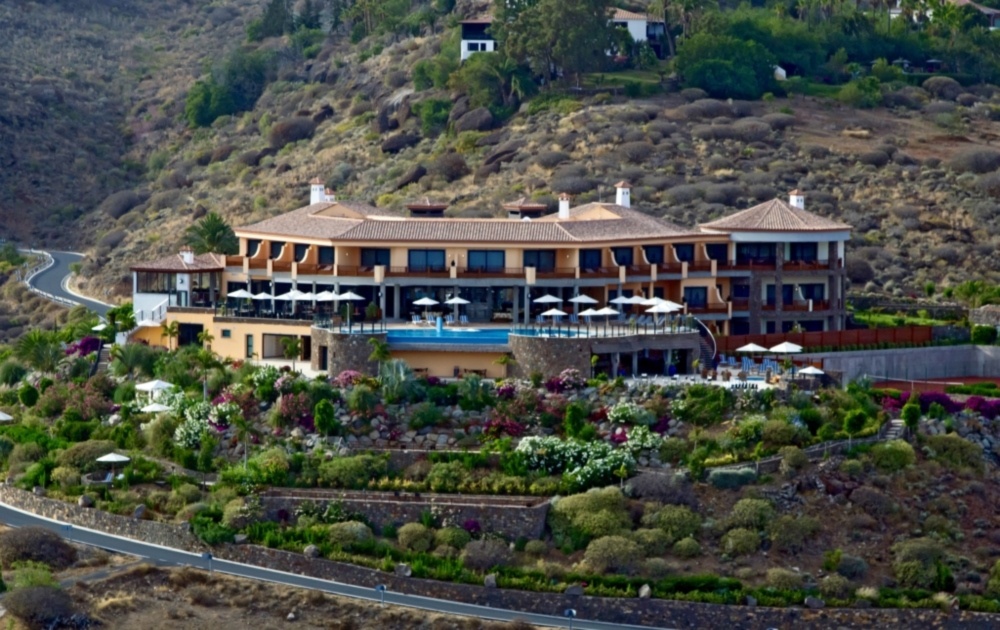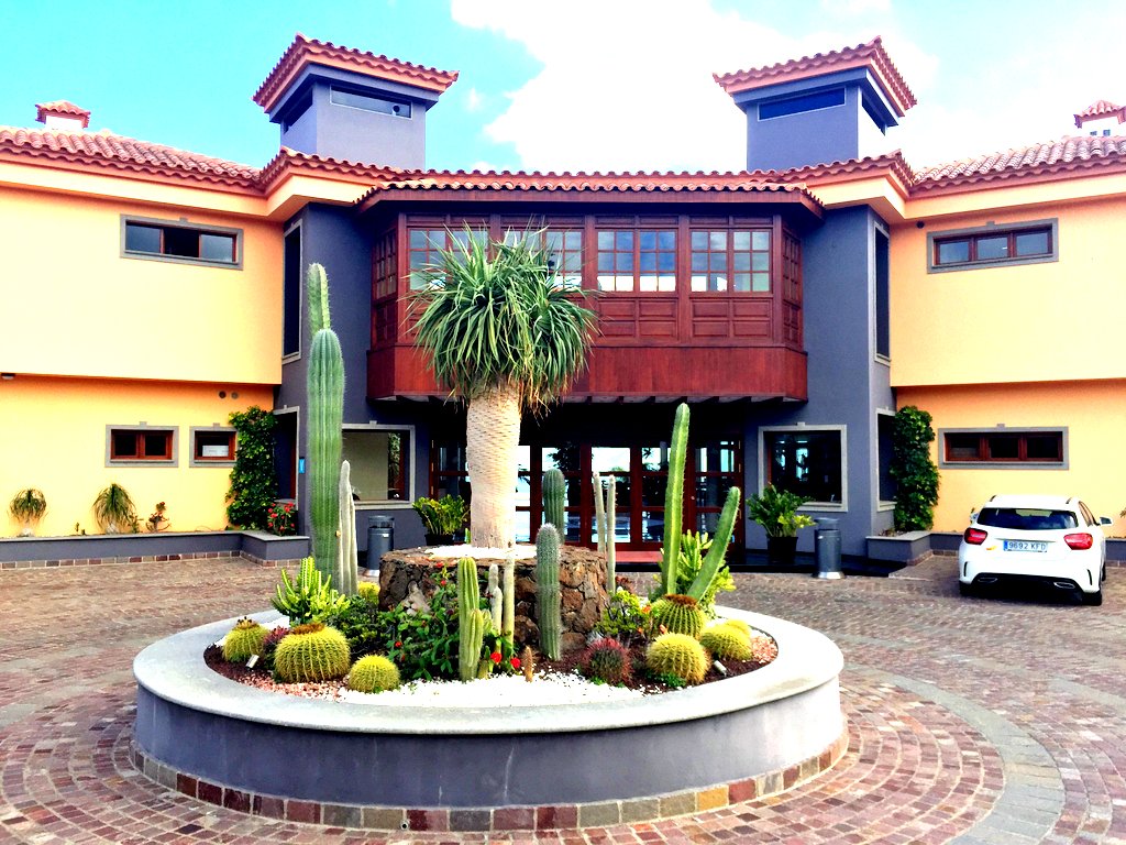 Das Hotel liegt im Süden der Insel oberhalb von Maspalomas in 500 Meter Meereshöhe. Nachdem wir die Autobahn vom Flughafen kommend nach ca. 20 Autominuten an Abfahrt 46 verlassen hatten, ging es auf schmalen Serpentinenstraßen stetig 10 Kilometer bergauf. Eine alpine Berglandschaft begrüßte uns mit grandiosen Felsformationen, spektakulären Aussichten und tiefen Tälern. Wir durchquerten das Bergdorf Montana La Data und sahen plötzlich in fantastischer Hanglage unser Hotel vor uns auftauchen. Nach ein paar weiteren Serpentinen bogen wir von der Fahrstraße ab und waren plötzlich in einer Oase totale Ruhe!