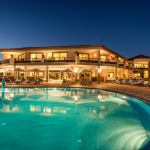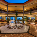 Die Architektur und geschmackvolle Einrichtung setzt auf klare Linien, beste Materialien und warme Farben und verzichtet erfreulicherweise auf den üblichen „Schnickschnack“ und dekorativen Ballast. Originell ist der oben offene Empfangsbereich – der meist blaue Himmel kontrastiert wunderbar mit dem Marmorboden. Für die eher seltenen Regenfälle scheint man durch eine ausgeklügelte Bodenneigung gut vorbereitet zu sein, wie man auf meine entsprechende Nachfrage entspannt, lächelnd antwortete.