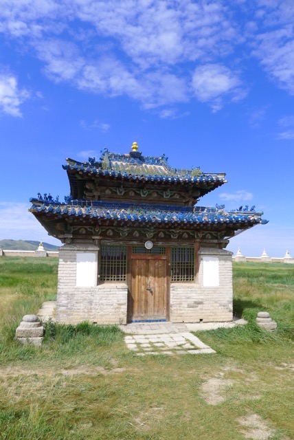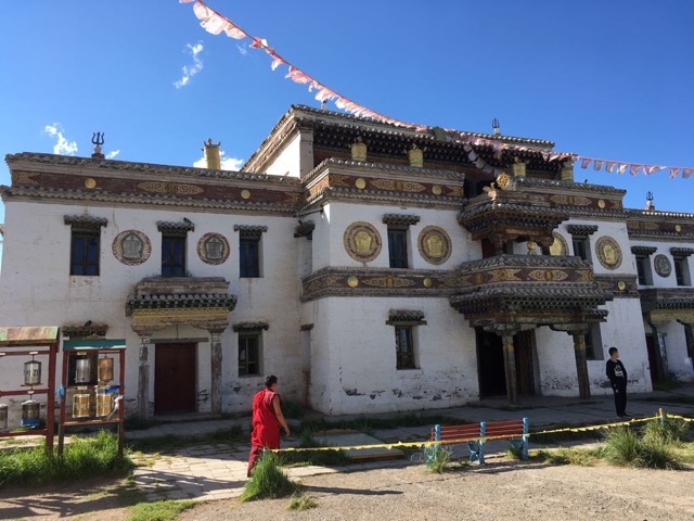Zunächst haben wir in Kharkhorin das Kloster Erdeenezuu besucht. Im 16. Jahrhundert wurde dieses 1. Lamaistische Kloster gebaut. Im Lauf der Jahrhunderte wurden über 100 Stupas gebaut und in der Spitze lebten hier 10.000 Mönche. Eine eindrucksvolle Anlage. 1937 haben mongolische Truppen die Anlage zerstört (gesprengt). Erst ab 1990 begann wieder ein kleiner Klosterbetrieb und die einige Tempel und Stupas sind wieder aufgebaut.