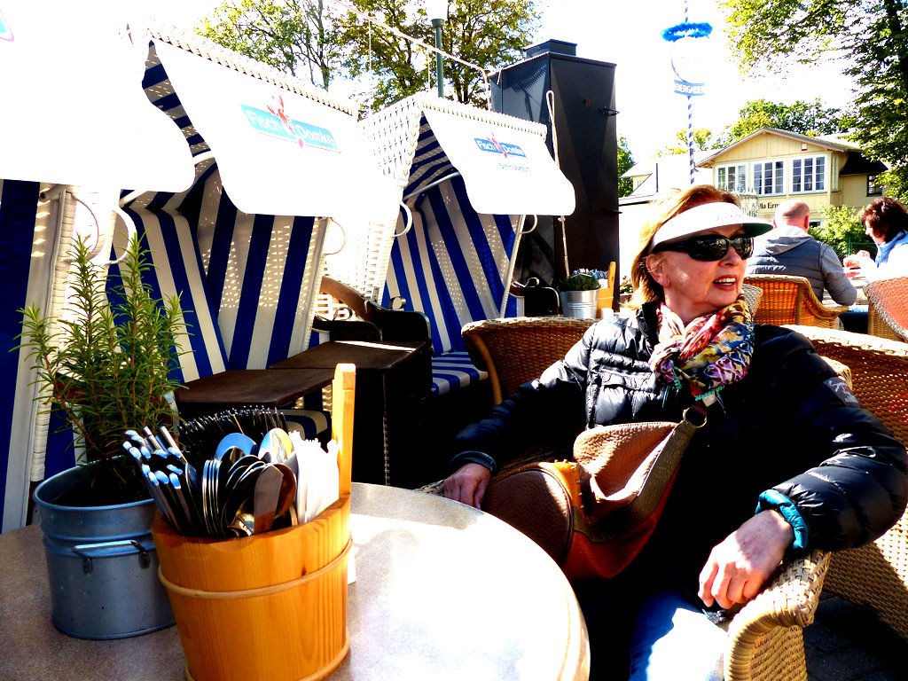 Den einzigen Regentag nutzten wir zu einem Ausflug nach Polen, nach Swinemünde. Das größte und ehemals deutsche Seebad auf Usedom wurde nach dem Kriegsende polnisch. Die inzwischen völlig offenen Grenzen machen Swinemünde wieder zu einem festen Bestandteil von Usedom. Die preiswerteren Lebensmittel, Textilien, Restaurants etc. tragen ihren Teil zum regen Grenzverkehr bei – ebenso das umfassende Angebot der „Polenmärkte“ .genannten Flohmärkte nach der Grenze. In der Innenstadt sieht man zwar noch ab und zu die Wunden der Zerstörung und die Bausünden der sozialistischen Nachkriegszeit, aber vieles ist wieder hergestellt und Teile der schönen Bäderarchitektur sind erhalten und renoviert. Dass eine alte Backsteinkirche im Zentrum heute ein Jugendcafe beherbergt steht im seltsamen Kontrast zur Verehrung der mit Blumen geschmückten Büste des ehemaligen polnischen Papstes. Wenn man sich im bunten Strandkorb am feinen Sandstrand den Wind um die Nase wehen lässt, zählt sowieso nur die entspannte Gegenwart und die Hoffnung auf eine bessere Zukunft mit vielen deutschen Touristen!