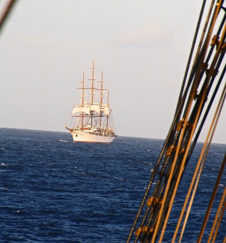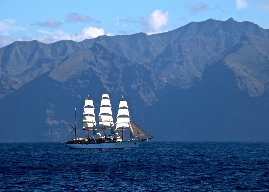 Am nächsten Morgen ging die Reise dann weiter mit Ziel La Gomera, der zweitkleinsten Insel der Kanaren. Die Fahrt dorthin entwickelte sich insofern zum Höhepunkt der Reise, als in den Morgenstunden das Schwesterschiff , die SEA CLOUD, am Horizont auftauchte und von nun an die beiden Schiffe zusammen segelten – der Viermaster SEACLOUD, Baujahr 1931 und unser Dreimaster SEACLOUD II, Baujahr 2001. Ein phantastischer Anblick und für mich – wie für viele andere Passagiere – der Hauptgrund, diese Reise zu buchen.