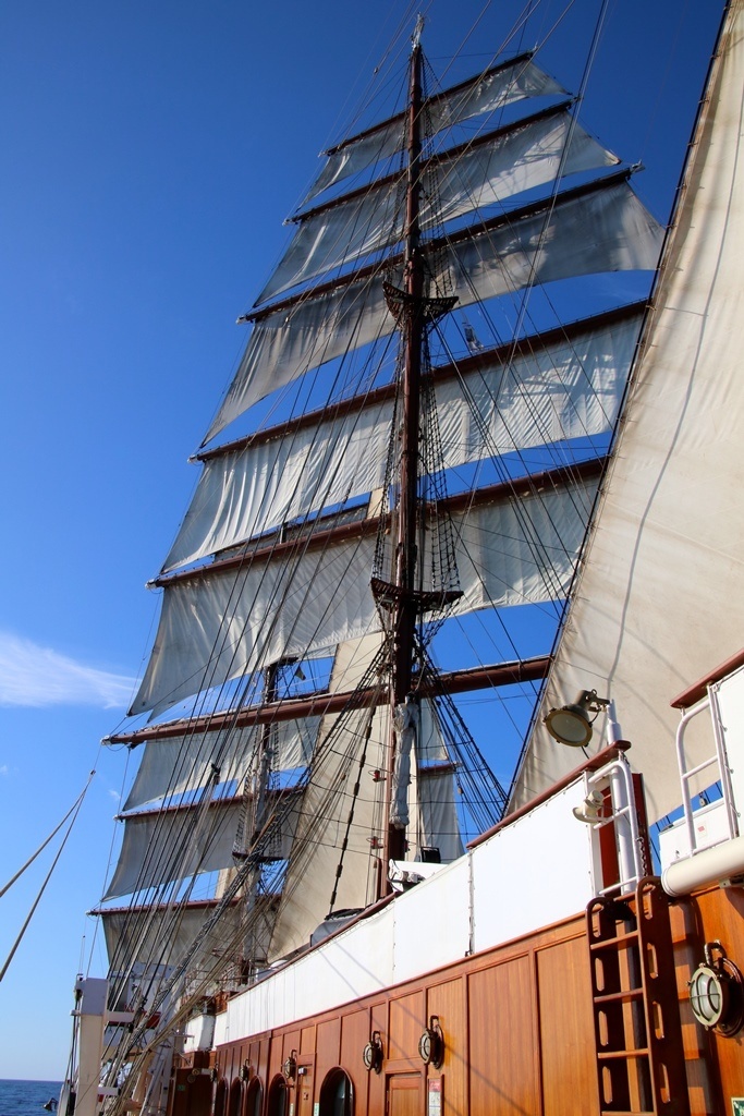 Nun war es endlich soweit, dass ich nicht nur schöne Bilder dieses Schiffes im Netz anschauen konnte, sondern da war sie nun, im Hafen von Las Palmas, Gran Canaria,  (siehe Anlagen “ Las Palmas “) in voller Größe und Schönheit! Das Schiff ist immerhin  117m lang, hat eine Gesamtsegelfläche von 3000m2 und der Großmast hat eine Höhe von 57m!